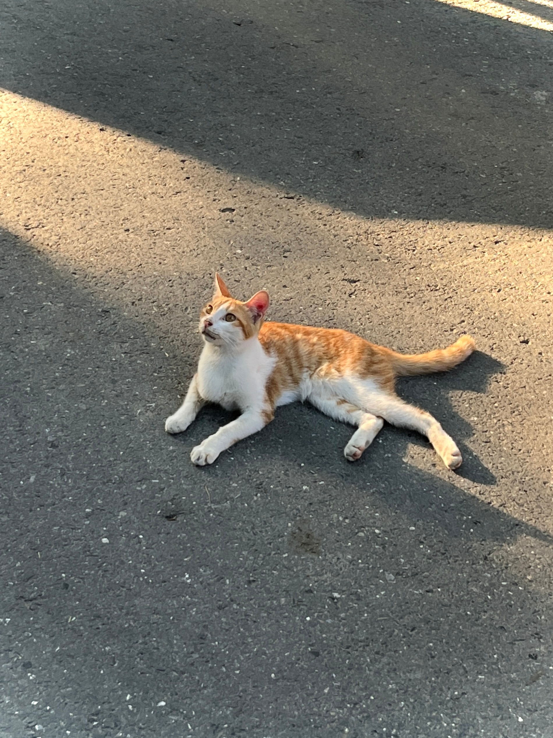 终于不用练车了o(^▽^)o和驾校的小猫混熟了 小猫对我翻肚皮 怕它挠我不敢摸