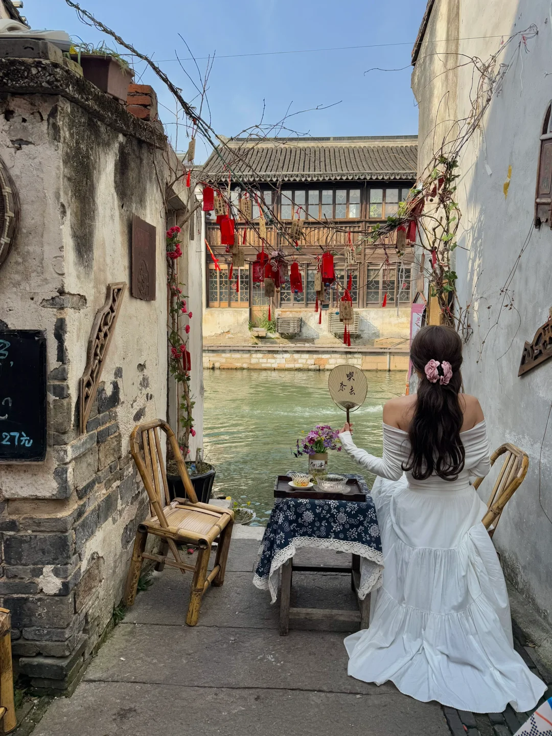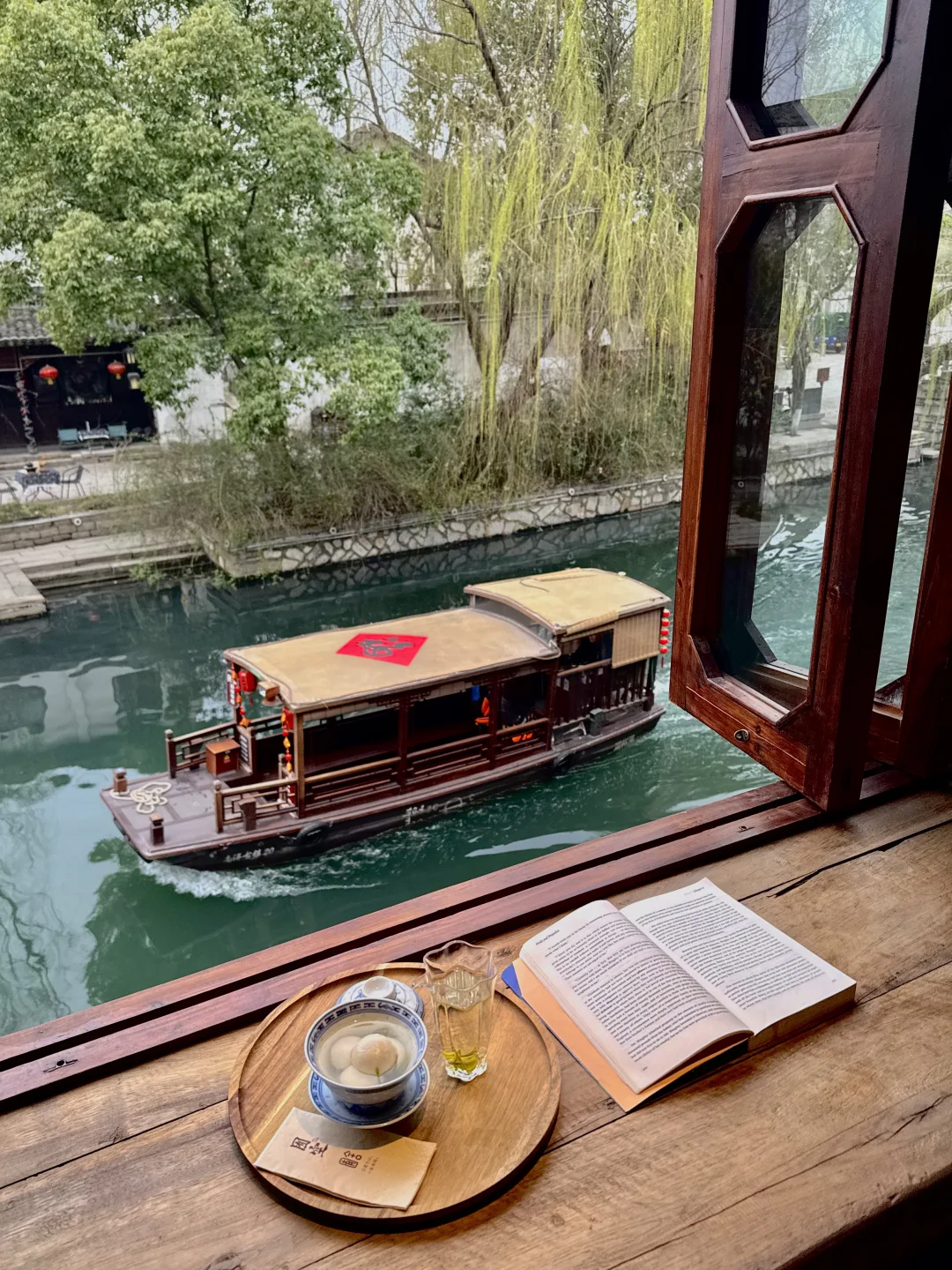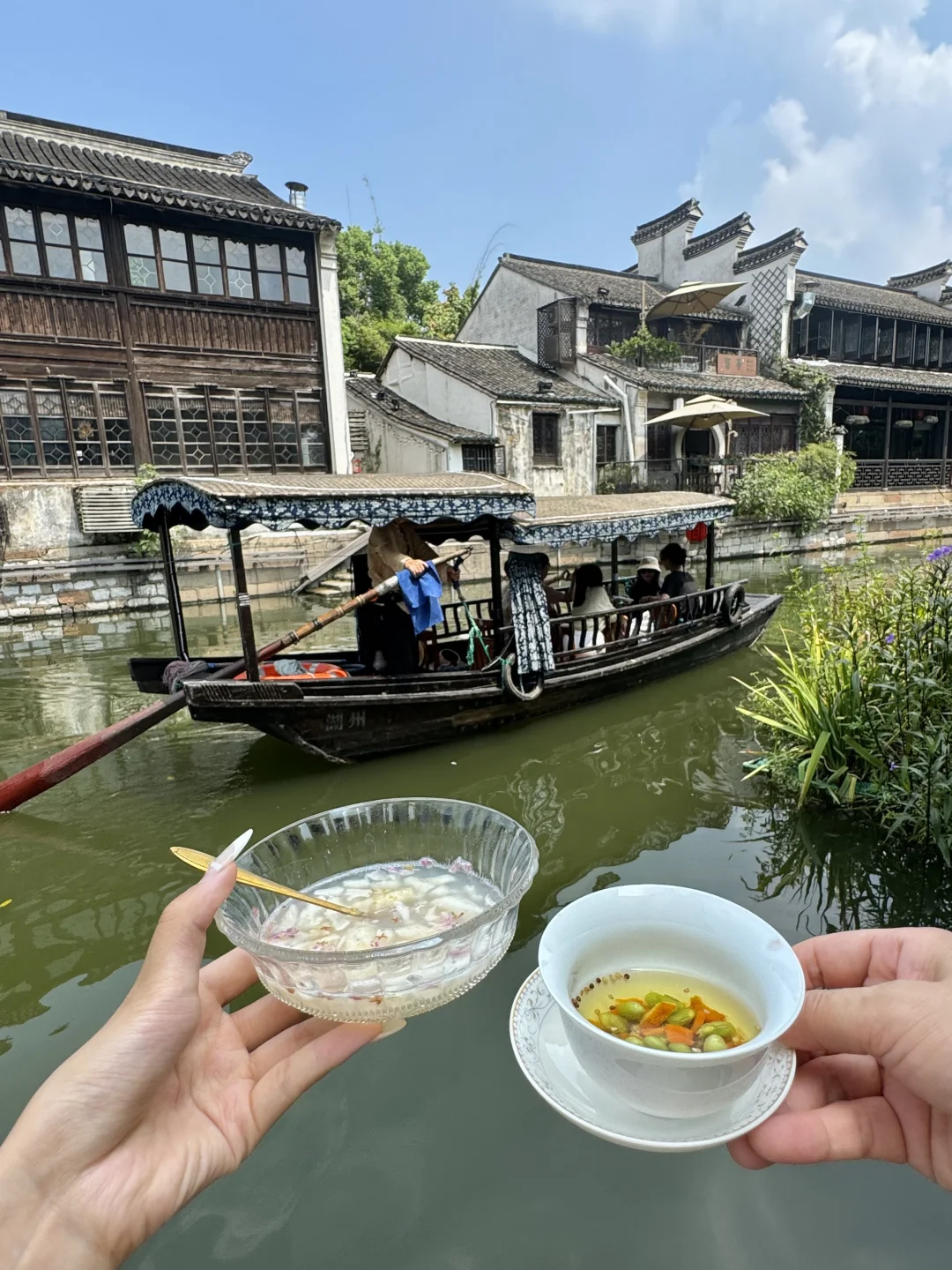 3️⃣在河边喝三道茶 看摇橹船 感受烟雨江南