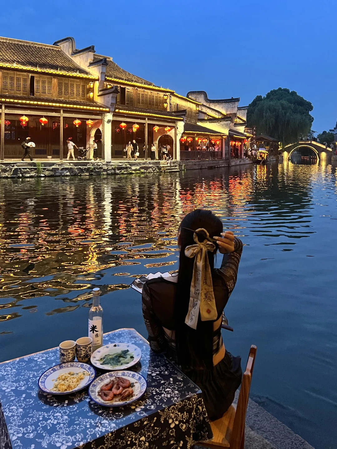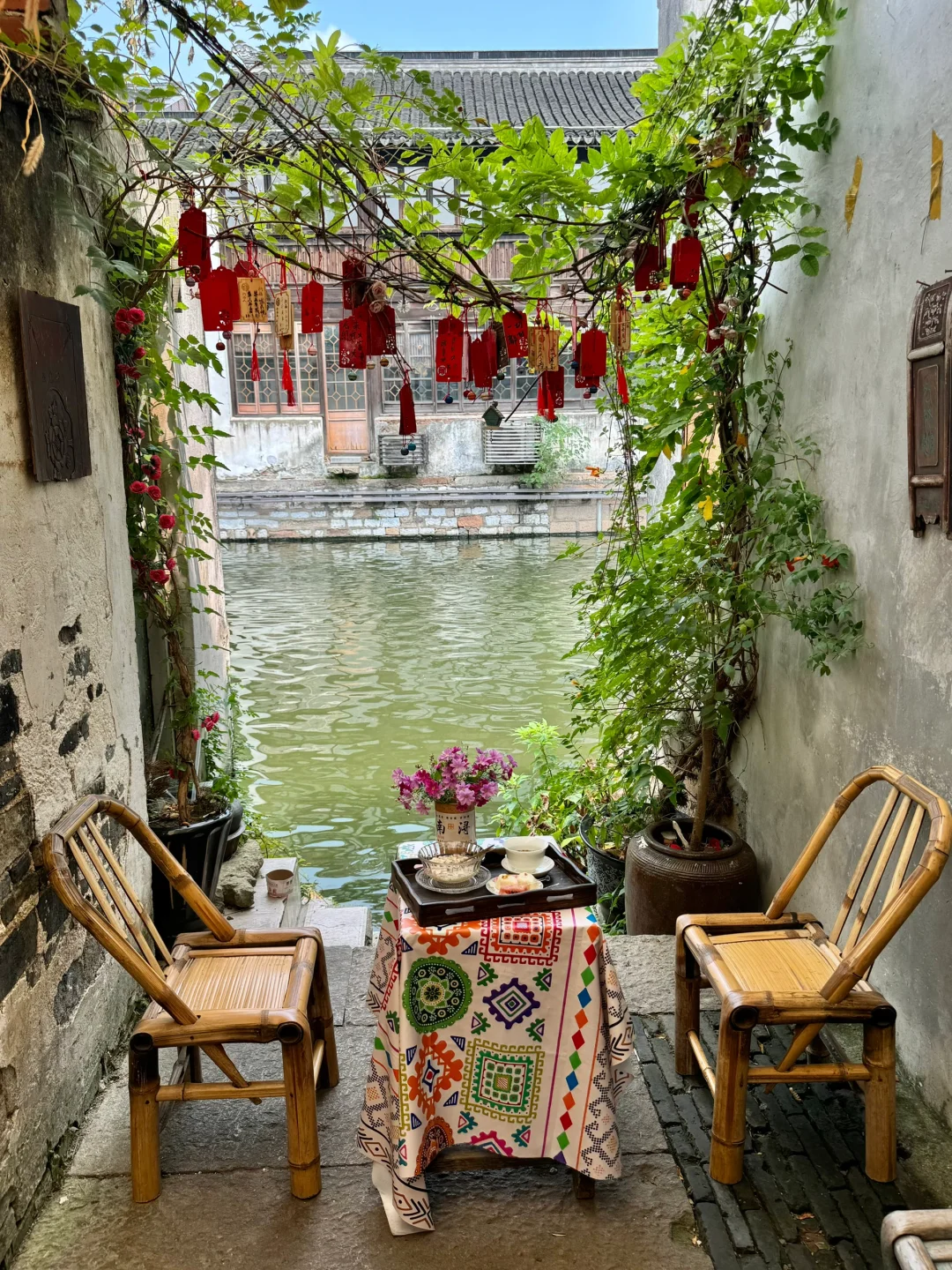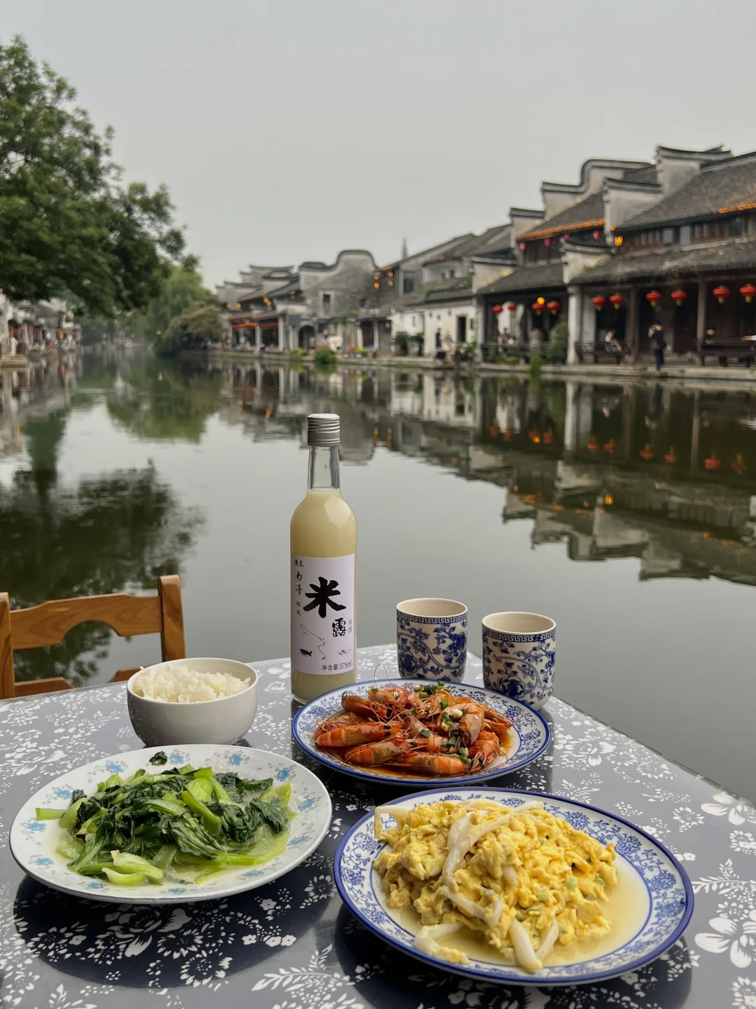 3️⃣在河边喝三道茶 看摇橹船 感受烟雨江南