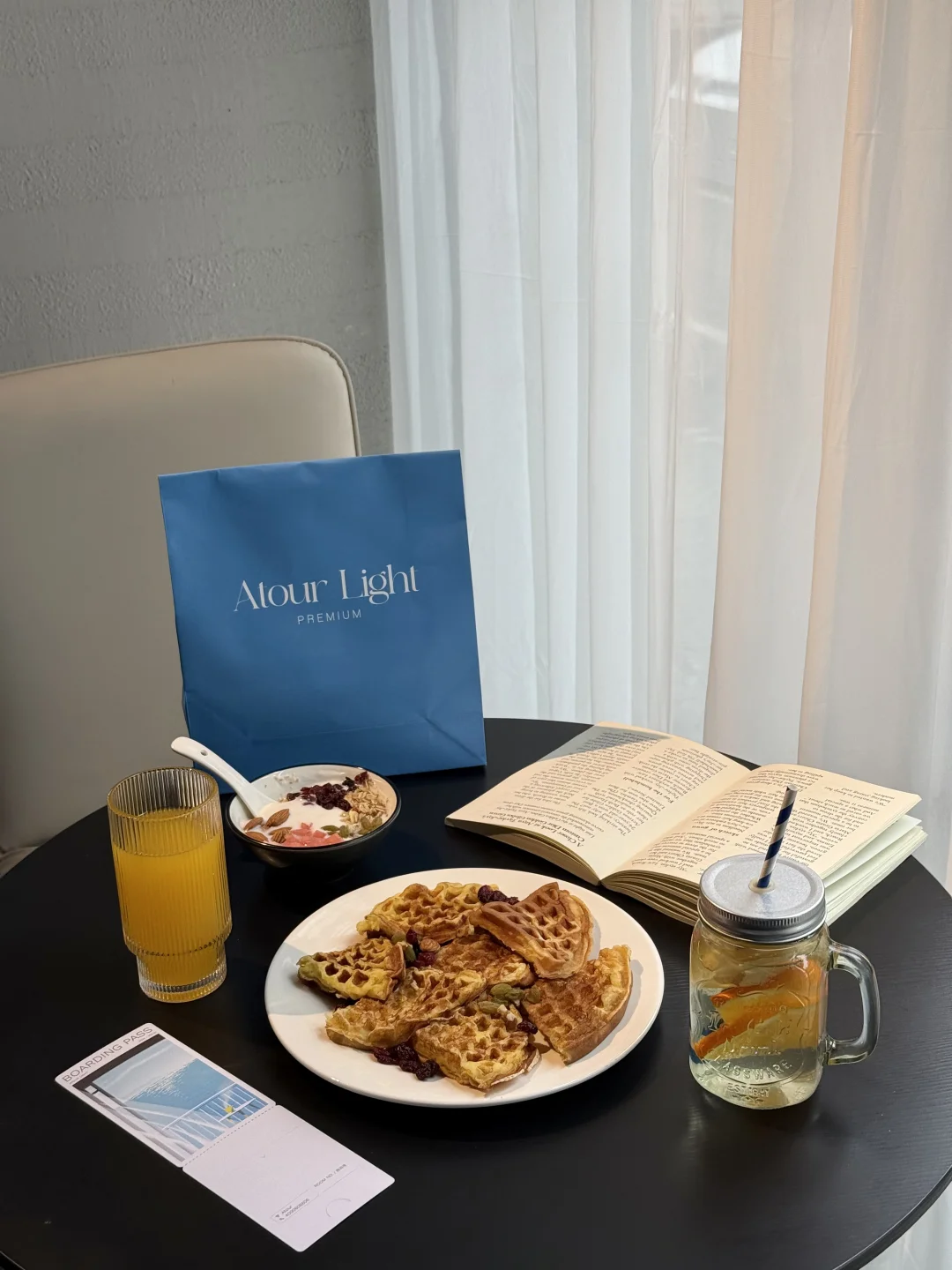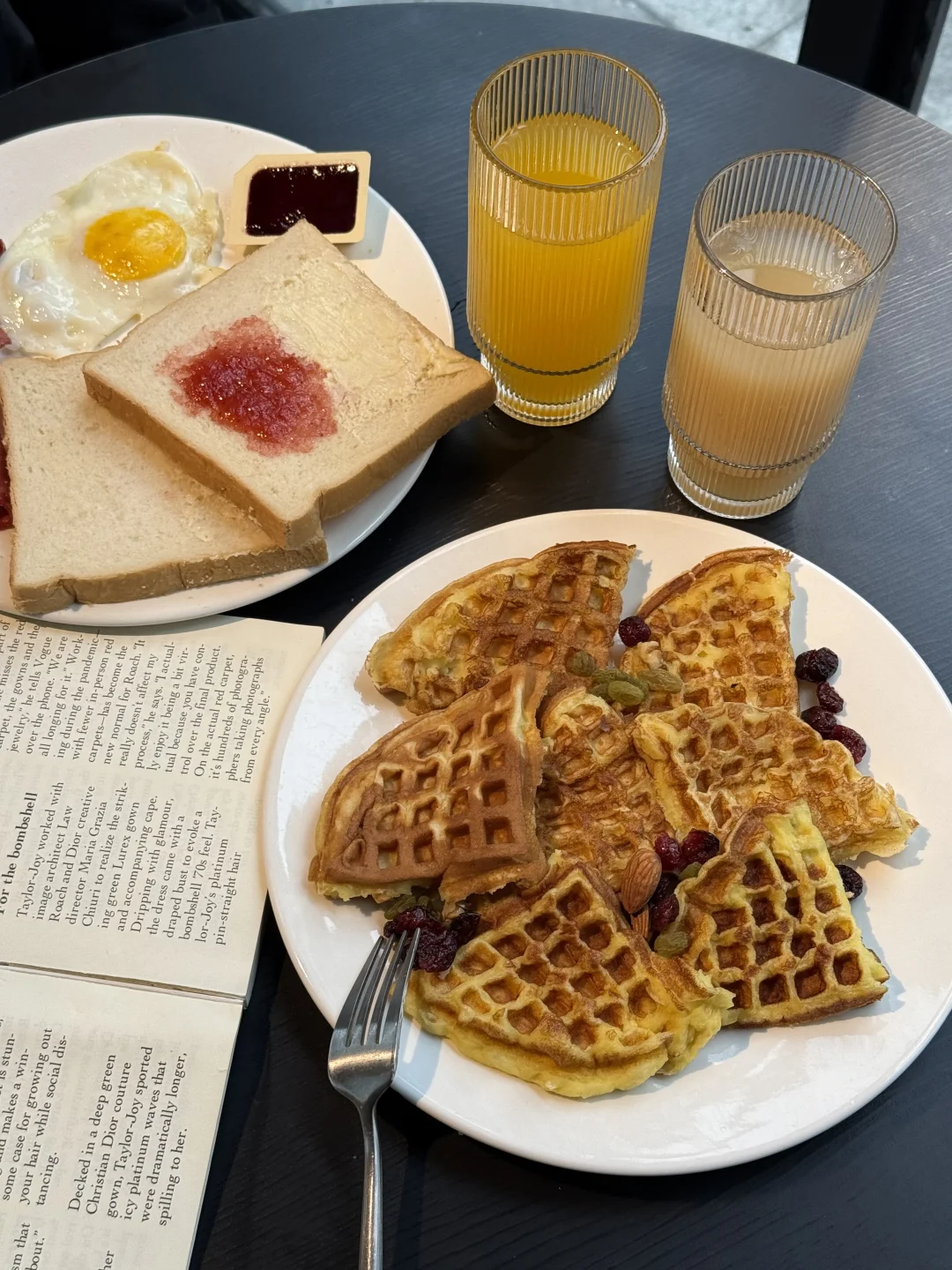 很爱她们家的轻食早餐🧇种类丰富hin好吃!有好喝的吨吨水🌸、漂亮特调、酸奶碗…这里还能diy华夫饼🧇、各种小甜点很惊喜~这里服务也贴心 (如果早上起不来 可以提前和蓝朋友说 会直接把盲盒早餐送上门)