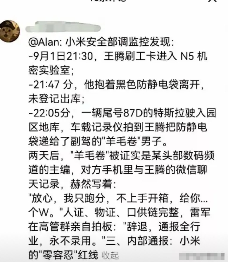 小米集团职业道德委员会”今日发布内容邮件,通报对王腾违规违纪的处理决定。中国区市场部员工王腾,泄露公司机密信息,且存在利益冲突等严重违规违纪行为。根据《小米集团员工违规违纪行为处理办法》《小米集团诚信廉洁守则》等制度规定,公司决定给予王腾辞退的处分。