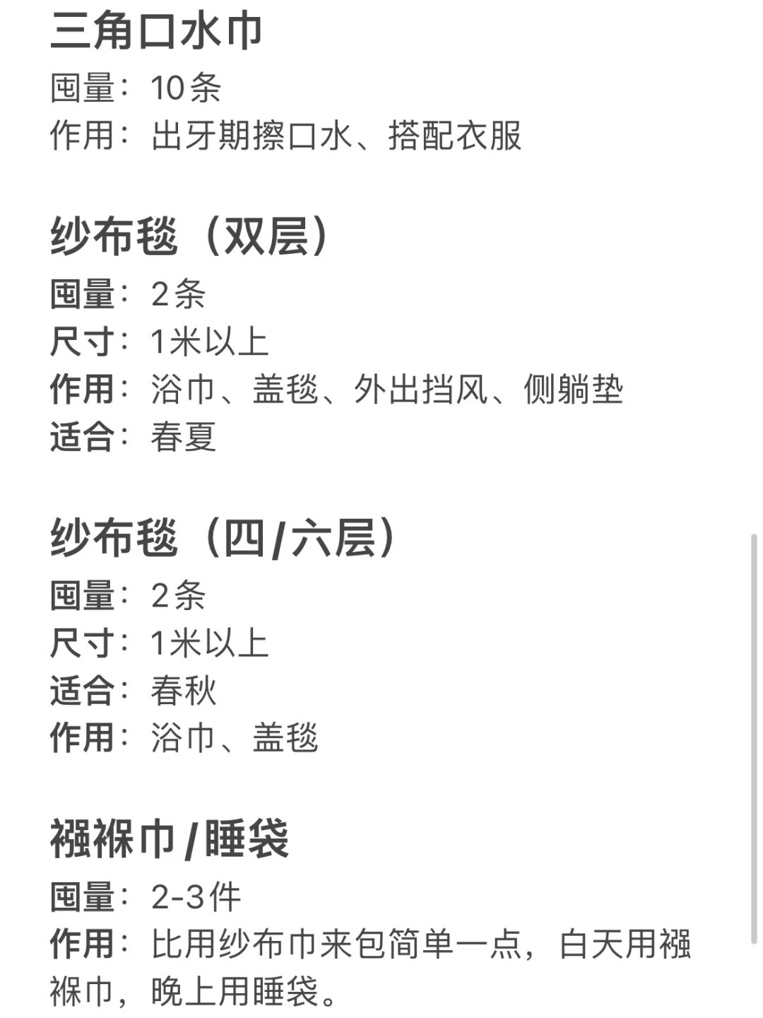 🔸纱布毯(四/六层):囤2条