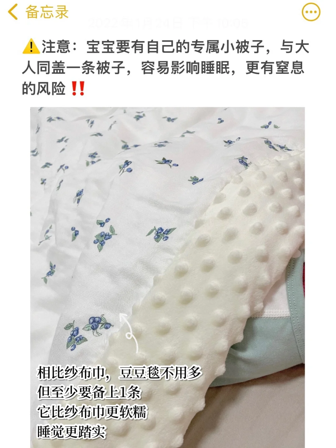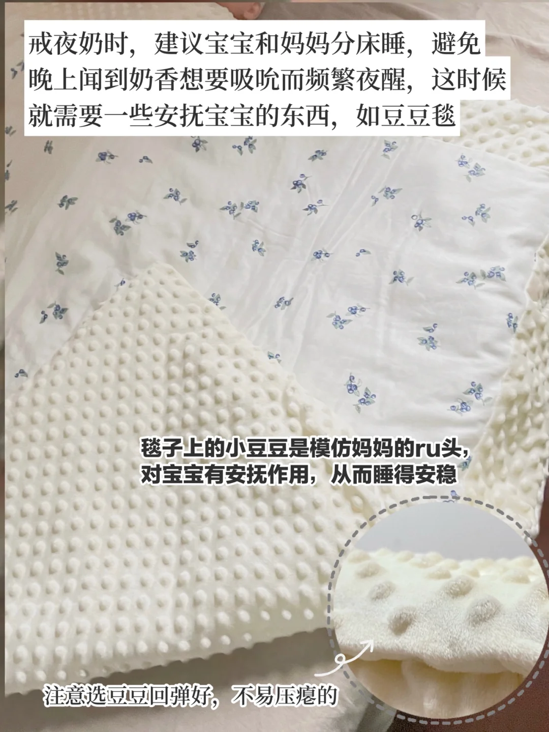 🔹豆豆毯:至少准备1条,超柔软的小凸点对宝宝有很好的安抚作用。