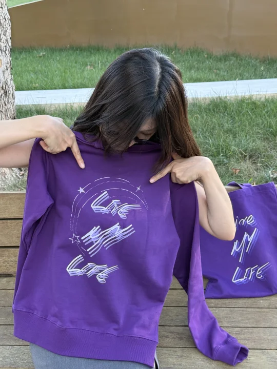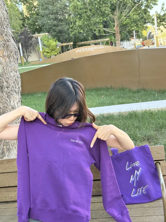 是我自己定制的! 最开始想定制这件卫衣是因为想去FAFA演唱会,正向的官方没有紫色的卫衣,于是想自己做一件做周边应援。 反复思考了一下衣服上的图案之后,决定用FAFA新歌【LIVE MY LIFE】来作为主要的图案,考虑到大家可以在日常情境之下都能穿的,所以没有过多地融入其他元素。 个人认为这首歌以及这个歌名是很好的一种启示,它表示着: 我的生活由我做主。我不再被他人的期望、社会压力或固有规则所束缚。我掌握自己的选择权,为自己的人生负责。 我要真实地活着,忠于自己的内心、价值观和热情,而不是活成别人眼中的样子。这是对“做自己”的强烈肯定。 我要充分地体验和享受生命的每一刻,不沉湎于过去,也不过度焦虑未来。珍惜此刻,活出生命的宽度和深度。 这是一种行动的号召。意味着勇敢地去追求梦想,不怕失败,不畏挑战,用行动去书写自己的人生故事。 “LIVE MY LIFE” 的核心精神是 自主、真实和勇气,亦是杨千嬅希望向我们传递的一种精神。 正如她所说: “願你也能聽見直覺,走在屬於自己的節奏上🎵” LIVE YOUR LIFE!