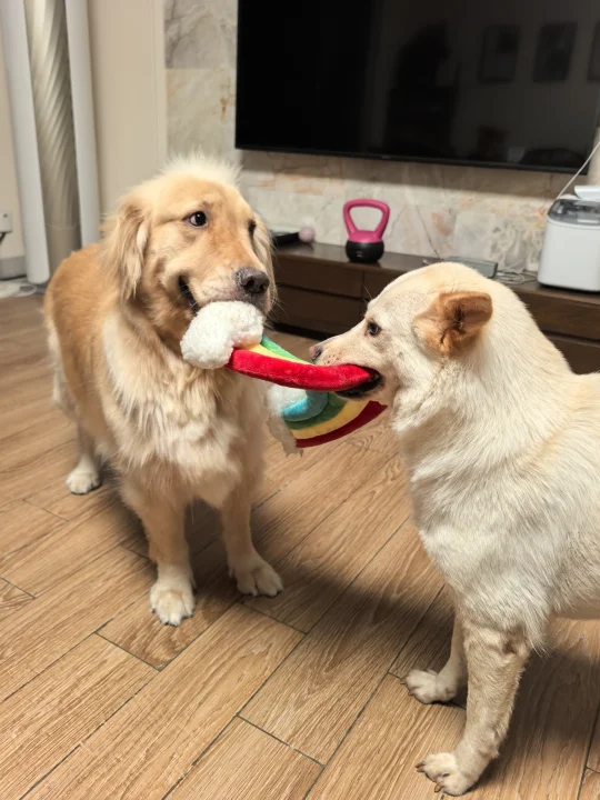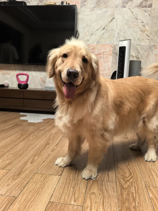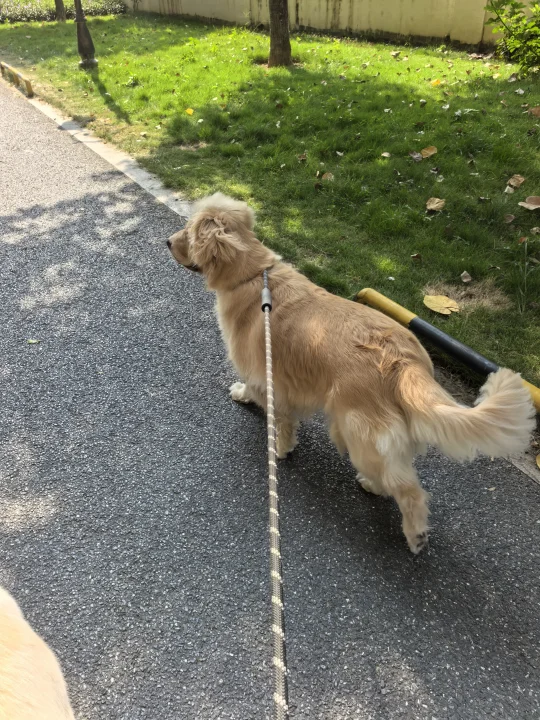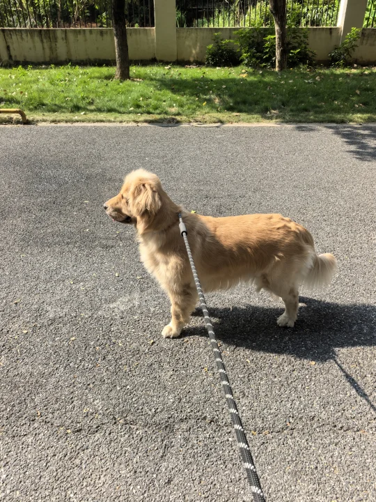 不知道是不是小时候给它用的沐浴露的作用,小呆毛越来越长,(双血统有证书有芯片)现在竟然看不习惯头顶没有呆毛的金毛了。天气太热,胸毛,一边的腹部毛,尾巴毛,随意剪了一部分。期待冬天恢复原样