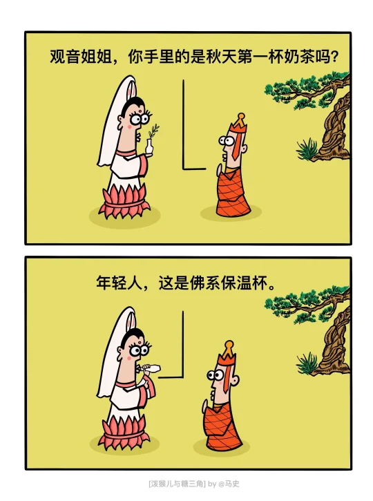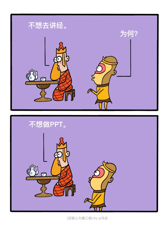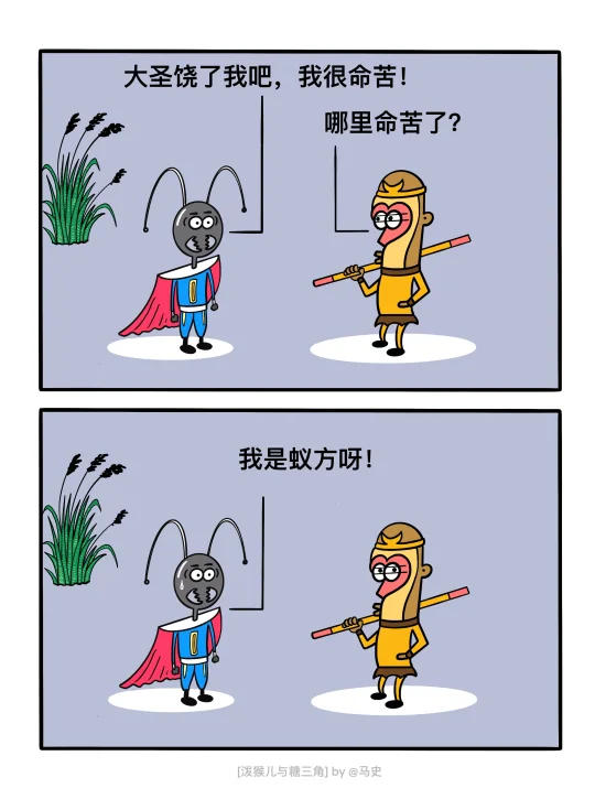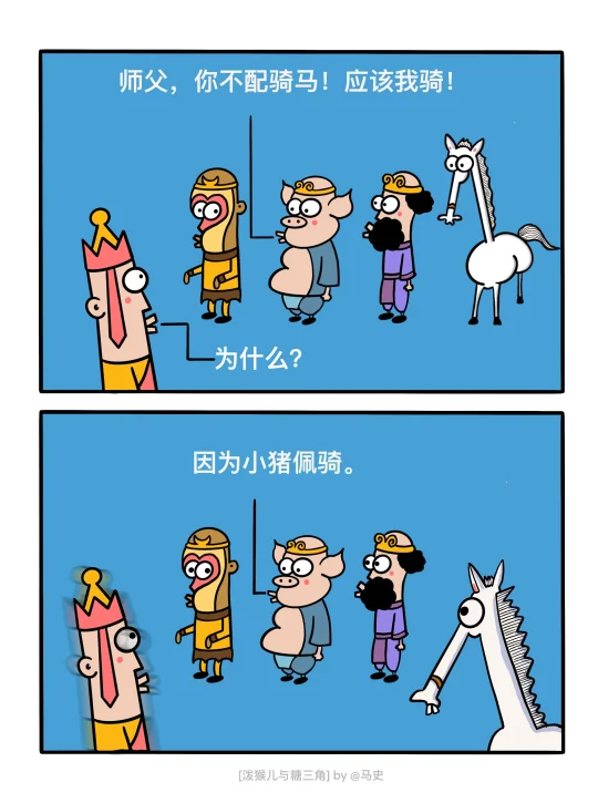 糖三角:猴纸,这是送你的礼物! 泼猴儿:我要为干什么? 糖三角:我录制了环绕立体声高保真紧箍咒,沉浸式的体验。 - 糖三角:好烦,不想去讲经。 泼猴儿:为什么? 糖三角:不想做ppt。 - 猪猪:师父,你不配骑白龙马! 糖三角:为什么? 猪猪:因为小猪佩奇! - 糖三角:观音姐姐,你手里的是秋天第一杯奶茶吗? 观音姐姐:年轻人,这是佛系保温杯啊! - 蚂蚁精:大圣饶了我吧,我可太命苦了! 泼猴儿:为何命苦? 蚂蚁精:我是蚁方啊!