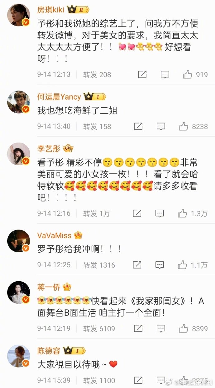 就这个罗予彤转发区是群像粉天菜我家那闺女二姐评论区太有料,演员、歌手、院人都在