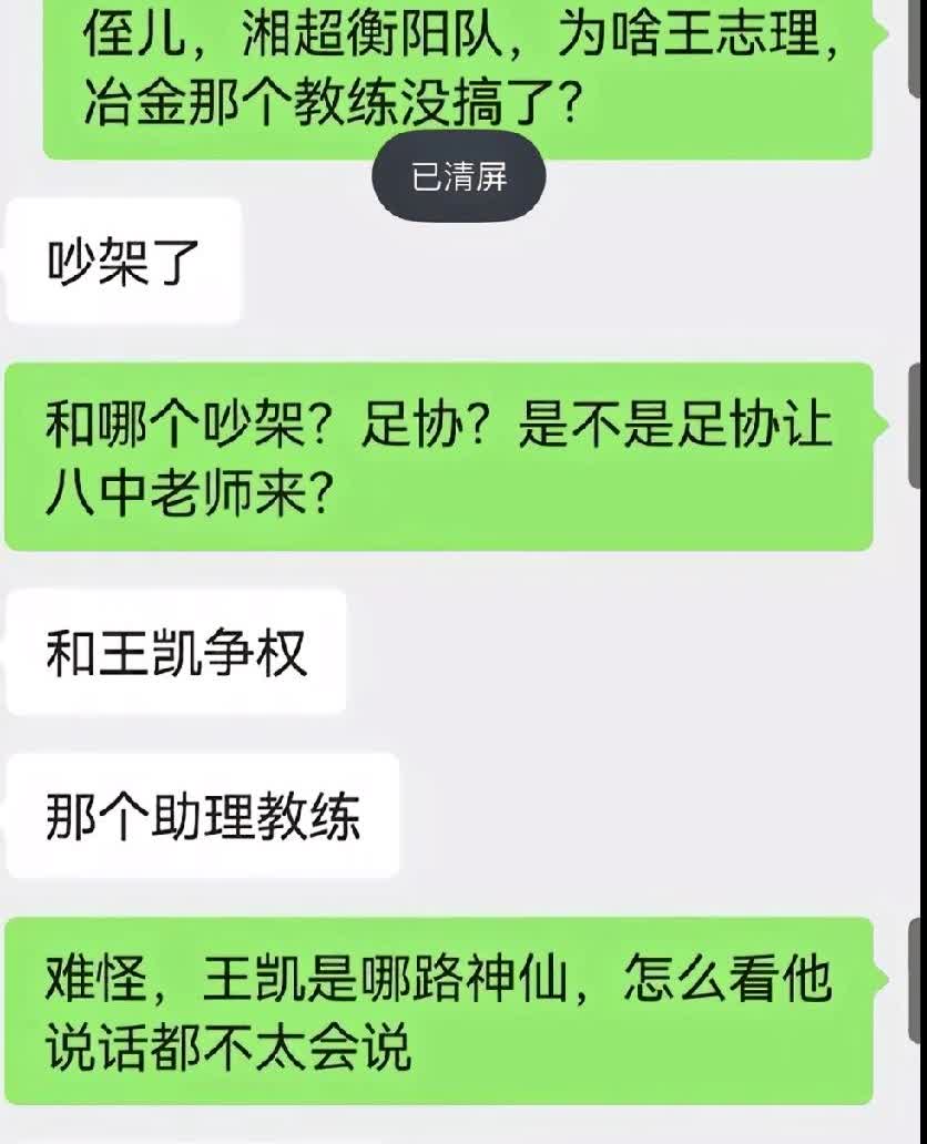 没有王志理教练不要去看了,足协是个啥玩意儿?湘超比赛也搞内幕 9月13日湘超衡阳主场2-3不敌株洲队,估计大部分球迷是不满意了,因为衡阳的足球在省内一直是很拔尖的,看看热身赛踢株洲、益阳、邵阳,都是大比分赢球,再看这次首秀踢的毫无章法,毫无战术,还想赢长沙,太打球迷的脸了。 后面才发现,原来那边比赛教练都换了,衡阳名帅王志理教练在衡阳都是很有名气的,结果换了个叫王凯的八中老师当主教练,选的球员大部分都是八中的,据网友透露,王凯和另一个助理教练架空了王志理教练,足协也支持王凯,王志理教练无奈撂挑子。 有网友透露,之前有几个在海外留学的海归球员,衡阳足协也不重视,像刘沛林和他带的几个球员来衡阳队报名,得不到尊重的情况下,去了长沙队当主力,而衡阳队在足协的安排下,球员换成了以八中为主的阵容,难怪热身赛打那么好,一到正赛就出来丢人现眼,本来还想着去看现场,现在怕丢不起那个人,衡阳不是输给株洲了,是输给自己人了,准确说是输给了衡阳足协和王凯教练了,你们自己去玩吧,我相信不换王志理教练,后面主场也没有几个人去看的,因为大家都是要脸的,不要现场看到被打脸,也不想衡阳再次因为这种乱七八糟的事情被全国笑话。