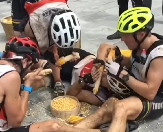 每年的武隆赛开赛前,大家都会把这段啃玉米的视频拿出来晒,确实太经典了,这是给玉米