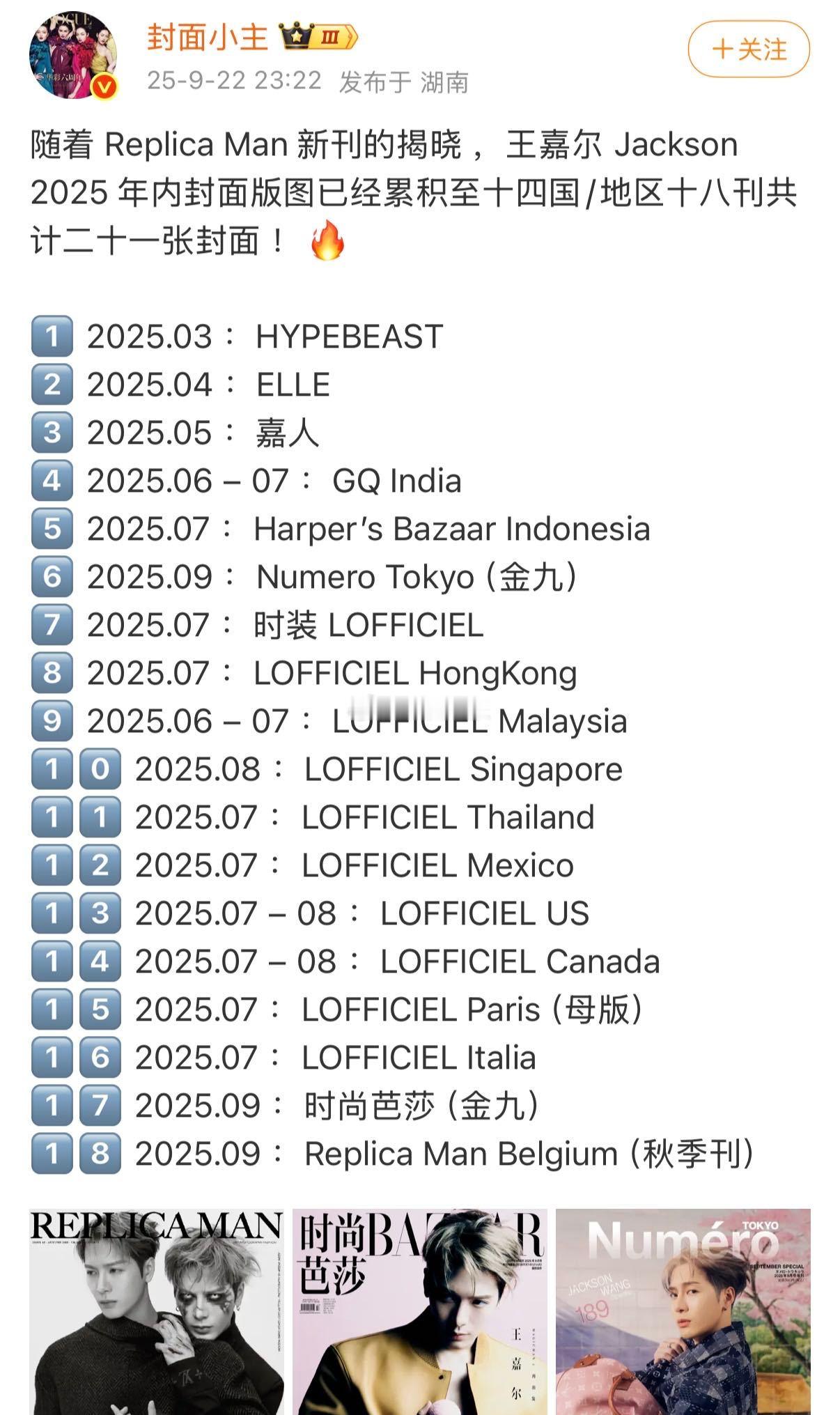 王嘉尔半年拍了21本封面