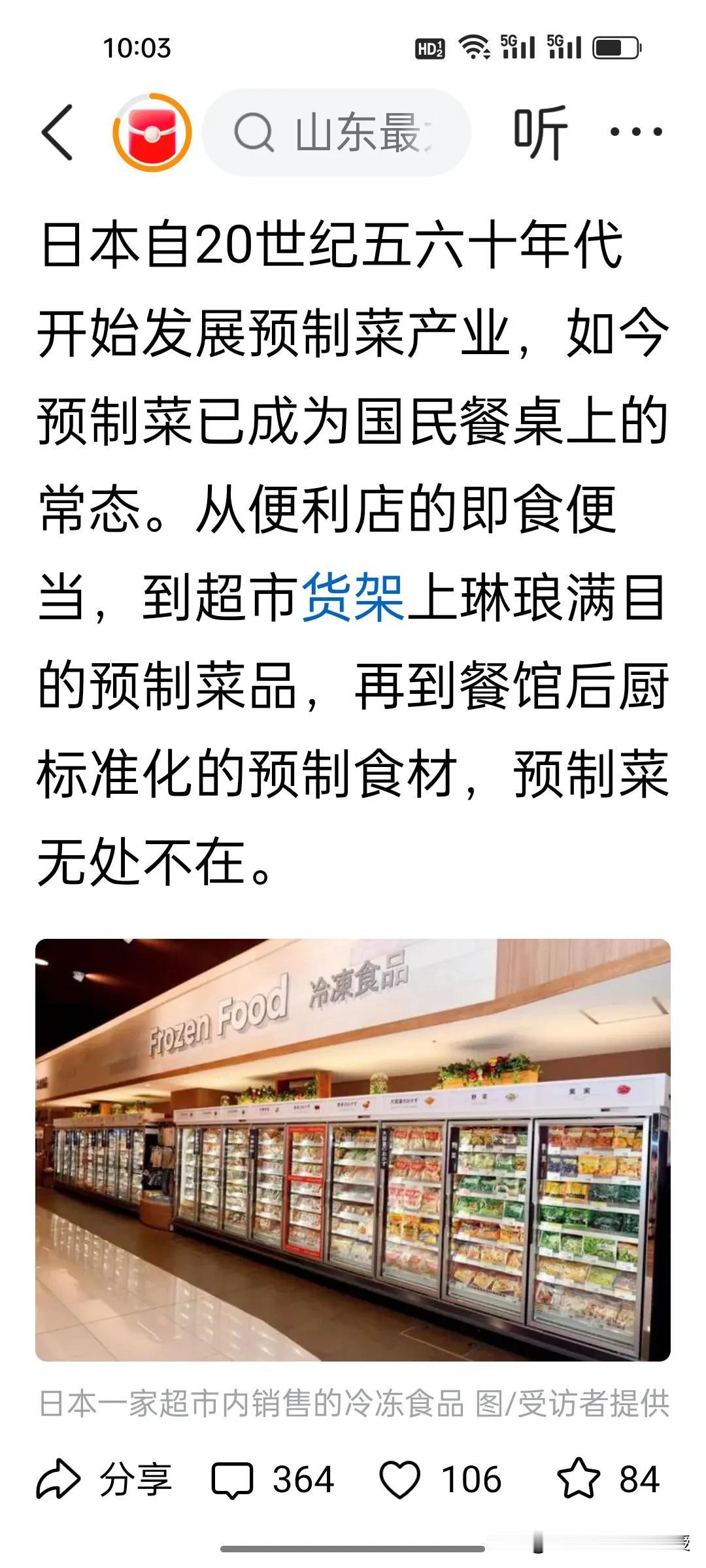 刚刚看到《中国新闻周刊》的一篇文章,说日本人吃了预制菜已经有50年。其实消费者也不反对预制菜,日本超市的预制菜保鲜期都不长,买完半成品回家做饭很节约时间。我们现在各大便利店也有很多这样的预制菜很受年轻人欢迎。 消费者反对的是商家卖预制菜还不告知消费者,还卖现炒的高价,这就说不过去了。消费者更看重的是明明白白消费,商家告知预制菜,消费者有选择的权利。 刚看到郑州老乡鸡店里就有红黄绿三色标记预制菜品,绿色说现炒,黄色是半成品预制菜,红色就是全预制,这样区别就一目了然,大家也吃得放心。