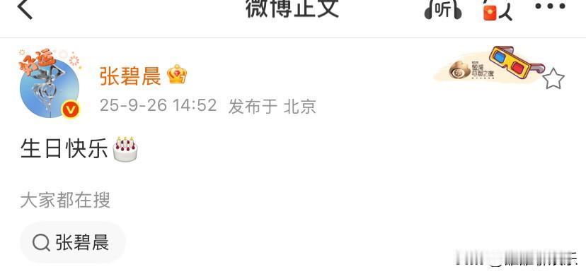 张碧晨高调发文:也许只有你还记得她。 9月26日,张碧晨在社交平台发文,只发了很简单的四个字: “生日快乐。” 大家都在纳闷,她这是祝谁生日快乐呢?如果是圈内好友的话,或许她会发一张合照,或者艾特一下这个人,但她只发了这四个字,就有点疑惑了。 直到看了评论区才知道,她这是在祝姚贝娜生日快乐,瞬间有点感动,红了眼眶。 这已经是张碧晨第十年为姚贝娜庆冥诞日,所有人都遗忘了,只有张碧晨还记得她,因为姚贝娜曾是张碧晨生活里的光。 在姚贝娜参加《中国好声音》那一年,张碧晨还在韩国当练习生,舞台上的姚贝娜一直激励着张碧晨,所以张碧晨参加了《中国好声音》,也选了那英当导师,因为这都是姚贝娜走过的路。 两人基本没什么大的交情,但姚贝娜却一直活在张碧晨心中,因为这份光让她勇敢向前。 虽然姚贝娜已经去世,但她的歌依旧的好听,依旧是很多人喜欢听的,《红颜劫》、《菩萨蛮》、《生命的河》等,都是大家熟知的歌曲,尤其是那首《红颜劫》百听不厌。
