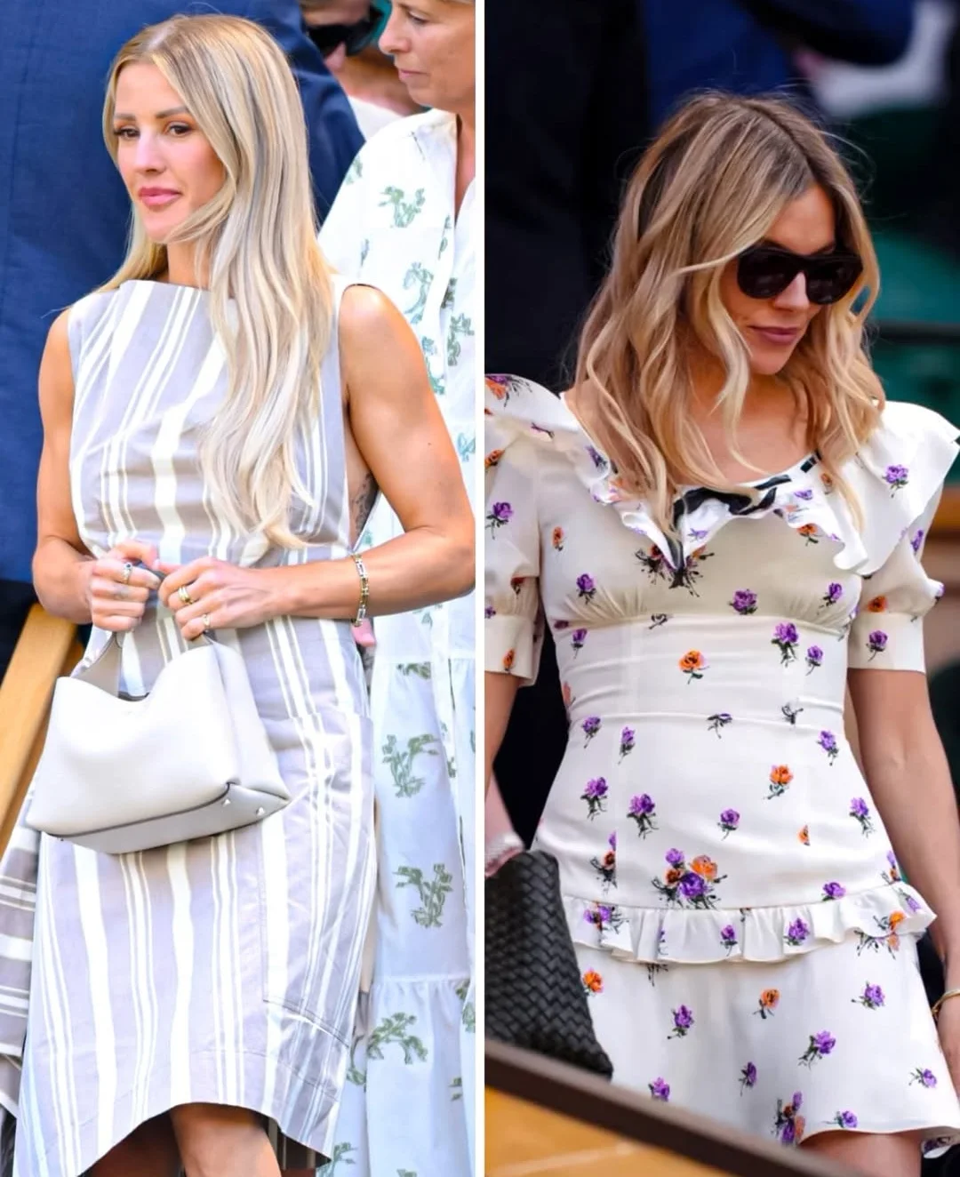 6- Ellie Goulding ( in Tod ' s ) and Sienna Miller ( in Alessandra Rich )
