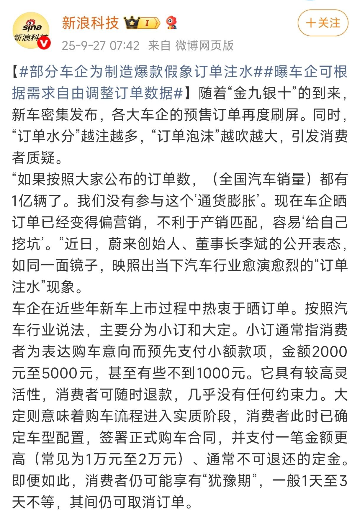 部分车企为制造爆款假象订单注水谁在注水?大家有头绪吗?[哈哈]