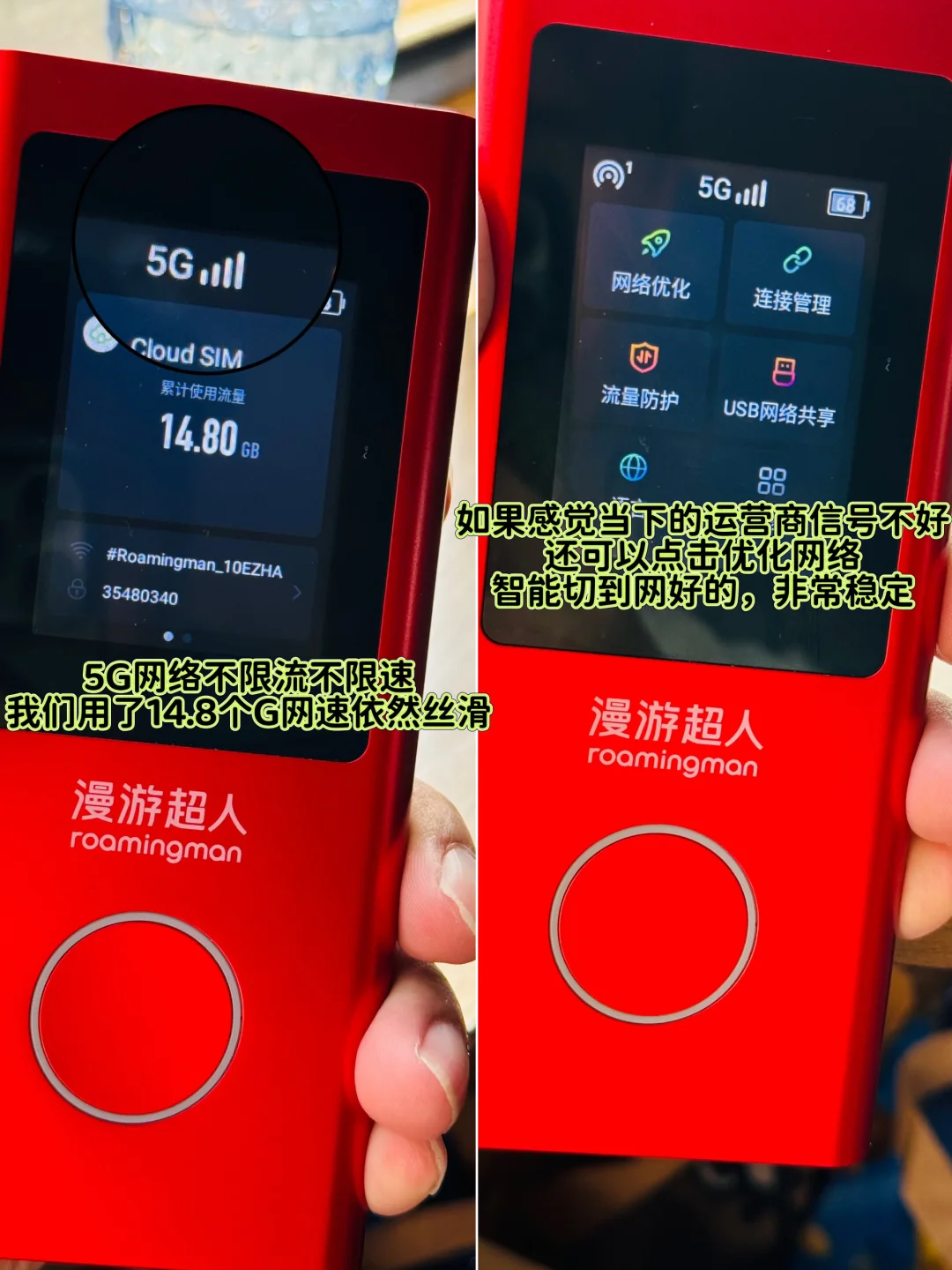 特别是我这次申根区与非申根区来回进出,电话卡就不方便了!用它完全不需要换卡,各个国家之间无缝连接,欧洲有很多运营商,如果感觉当下运营商信号不好,还可以点优化网络,智能切到网最好的,非常稳定!一台可以多人多台设备连接,分摊费用很划算
