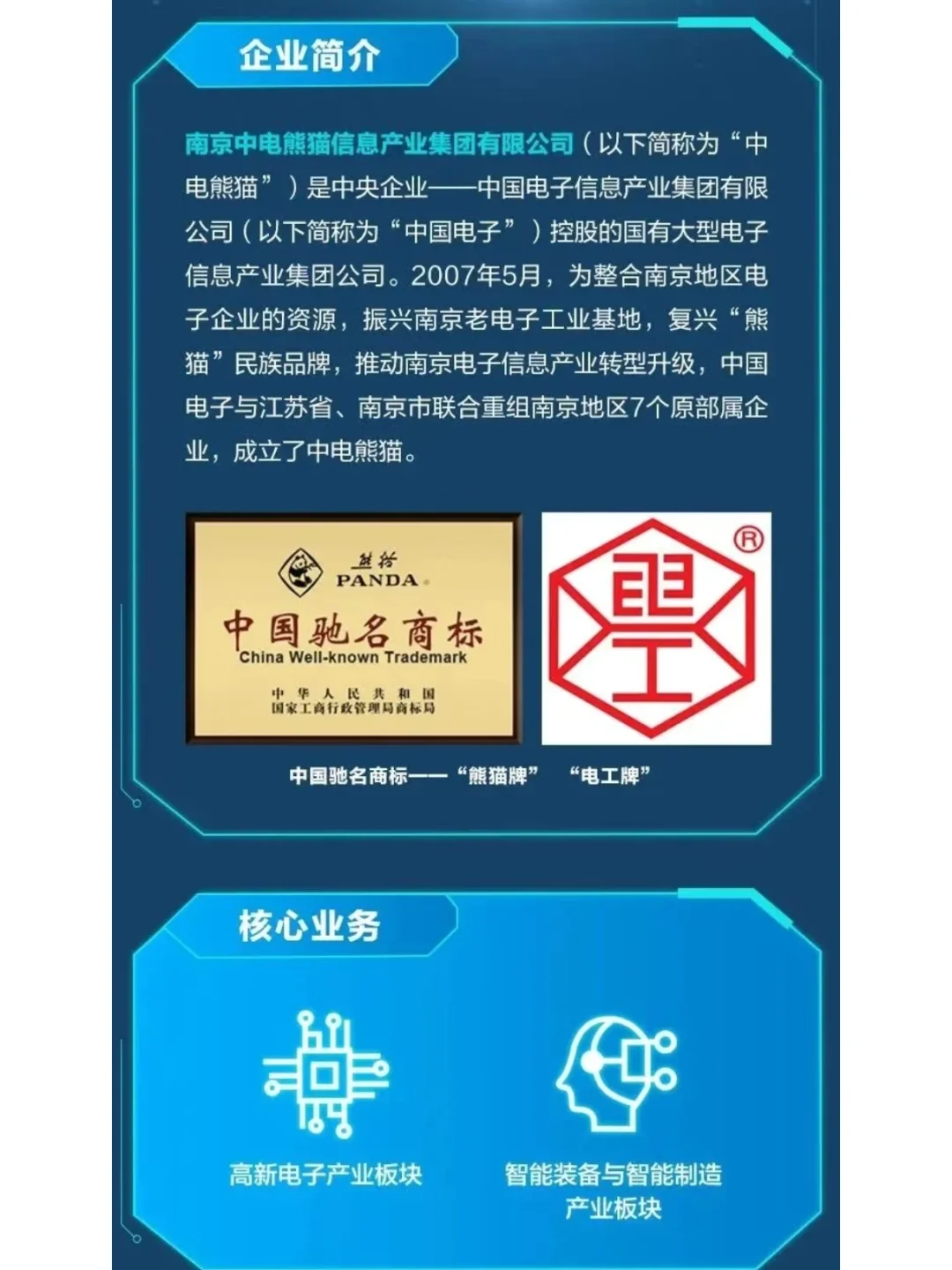 南京中电熊猫信息产业集团有限公司(中电熊猫)是中央企业一中国电子信息产业集团有限公司(中国电子)控股的国有大型电子信息产业集团公司。