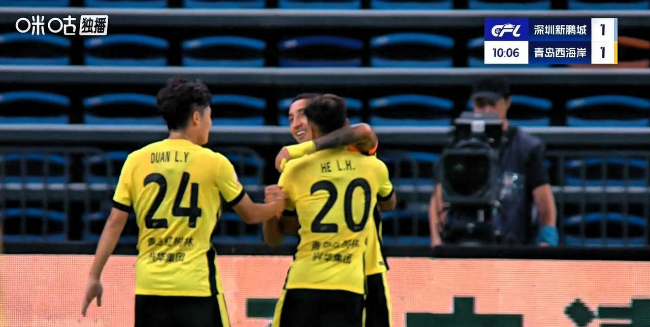 韦斯利开场4分钟闪击,戴维森9分钟接阿奇兹传球强势扳平!双方暂时战成1-1平局! 韦斯利打进个人第9粒进球,今夏来到深圳场均制造一球,表现抢眼!无奈深圳新鹏城的后防太拉夸!2号张卫踢呲,阿奇兹接球就传,戴维森单刀一条龙破门! 深圳新鹏城的后防线真是让人无语,这么豪华的锋线都挽救不了!