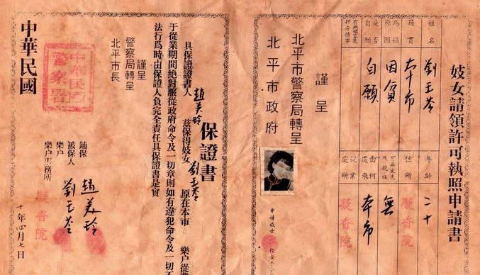 这是一张民国时期青楼女子营业执照申请书!看了证书的内容,让人心里不是滋味,久久不