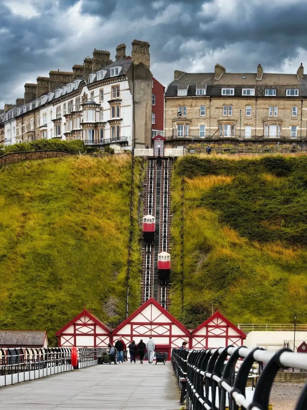 ▪️ Saltburn小镇海滩毗邻一个小山坡, 山坡上的轨道缆车是小镇的地标特色。