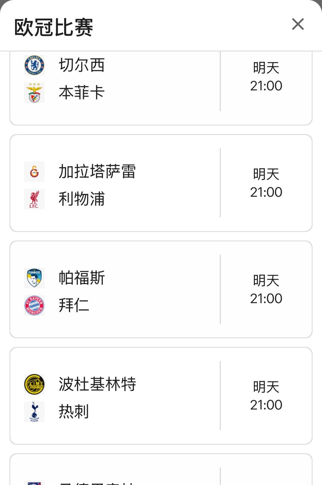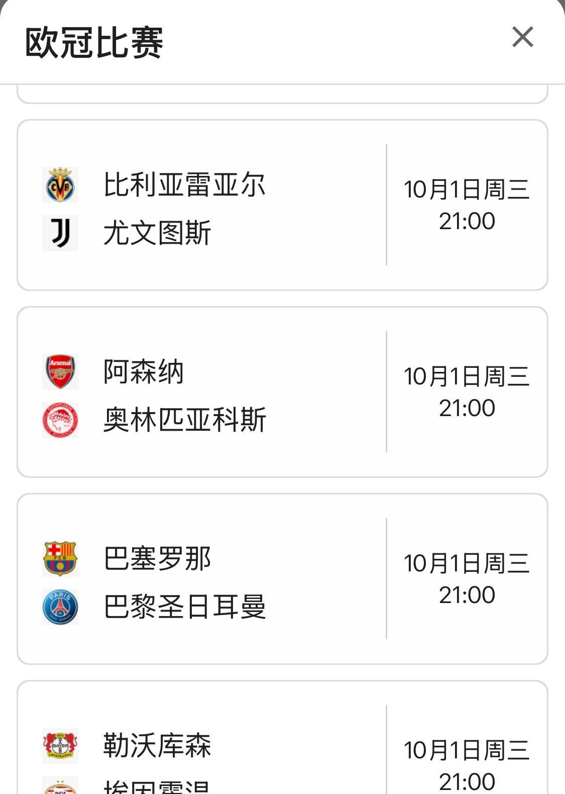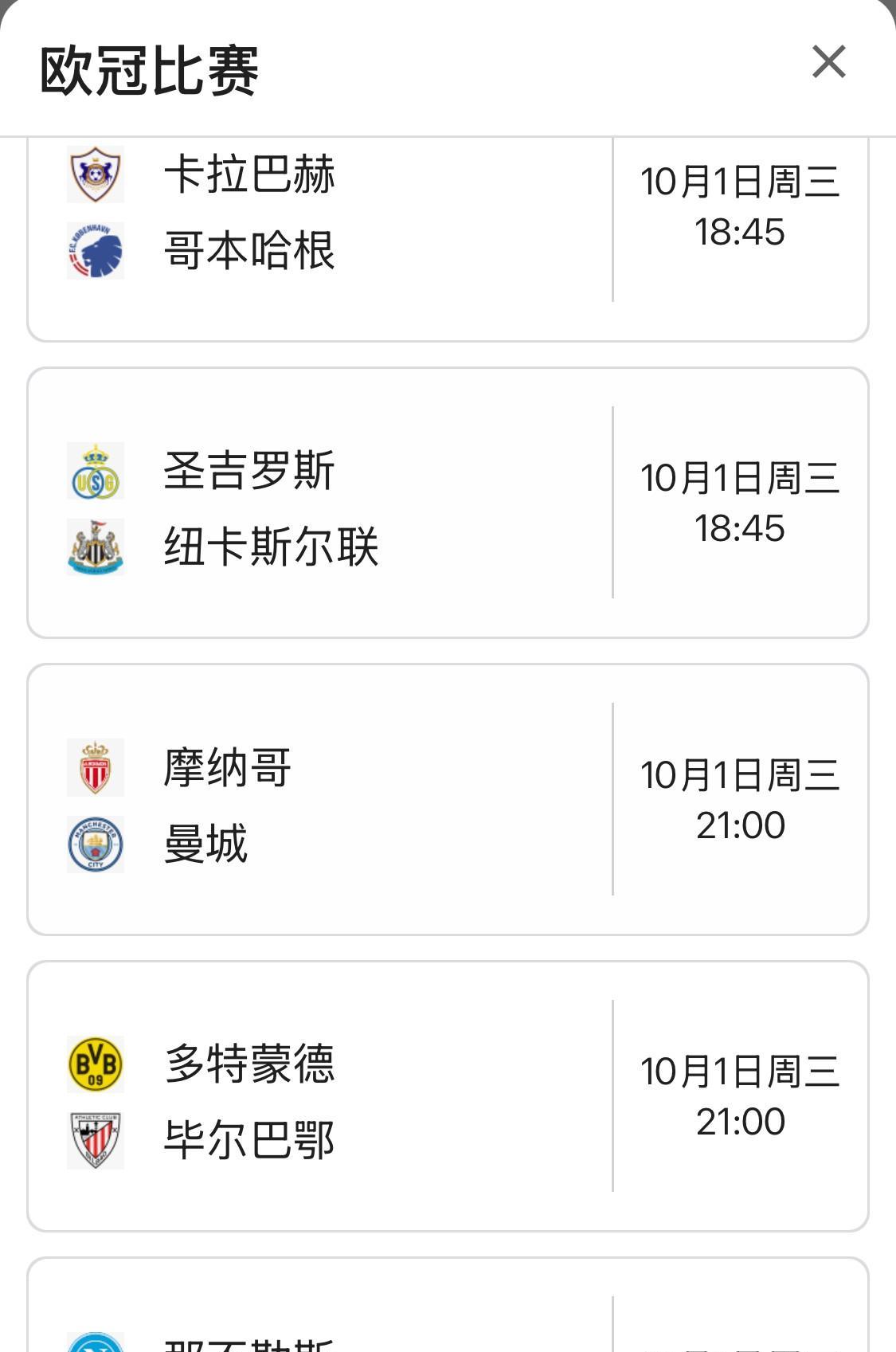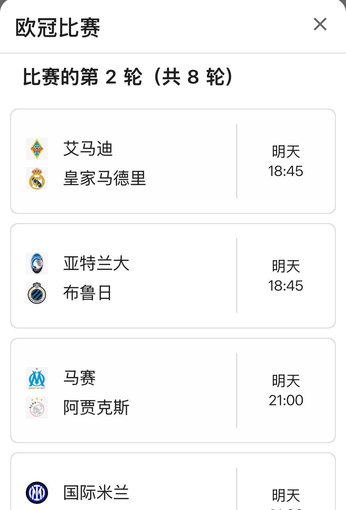 2025/2026欧冠比赛第二轮明天(周二、9月20号)、后天(周三、10月1号
