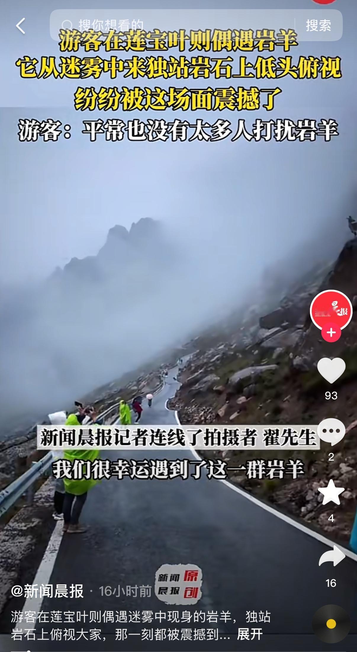 彻底看呆了!新华社转发的这幕,才是莲宝叶则最真的样子! 四川莲宝叶则的雨雾里,徒步的人撞见了“山神”——一只岩羊立在七八米高的岩石上,犄角像王冠,眼神炯炯地盯着人,嚼着东西的样子竟有种审视感。它半点不躲,倒像这“尊严的玉石之峰”的领主。 别光说它有灵性,这其实是最实在的生态答案。隔壁年宝玉则早因保护关闭,莲宝叶则的守护换来了动物的安心。岩羊不怕人,根本是因为没听过枪声、没遇过伤害,把人类的善意记在了心里。 那些说像《九色鹿》的网友没说错,但这哪是神话?是自然给守护者的回应。你说,这样的“山中精灵”,是不是比任何风景都动人?