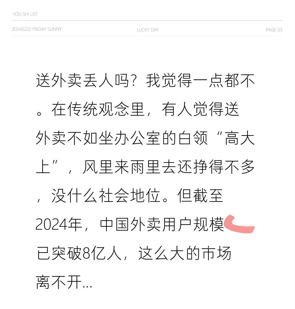 送外卖丢人吗?我觉得一点都不。在传统观念里,有人觉得送外卖不如坐办公室的白领“高