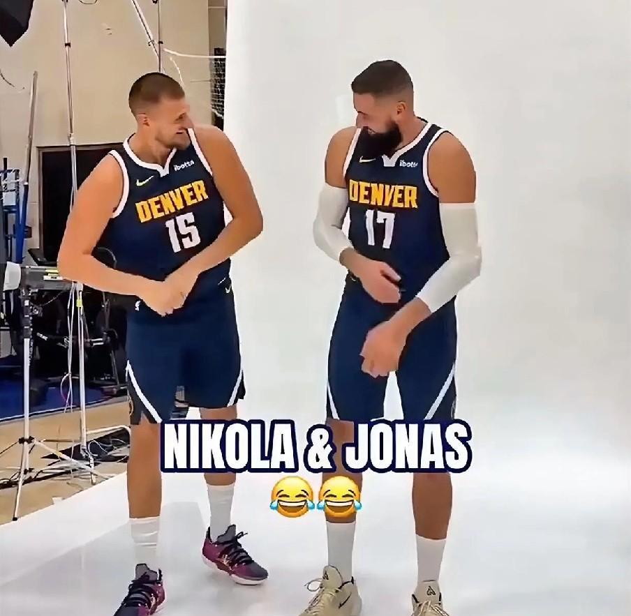 掘金双塔,这不是挺好的吗! 掘金的媒体日,拍定妆照时,约基奇和瓦兰这一组是最让人