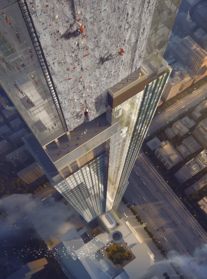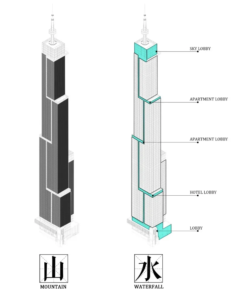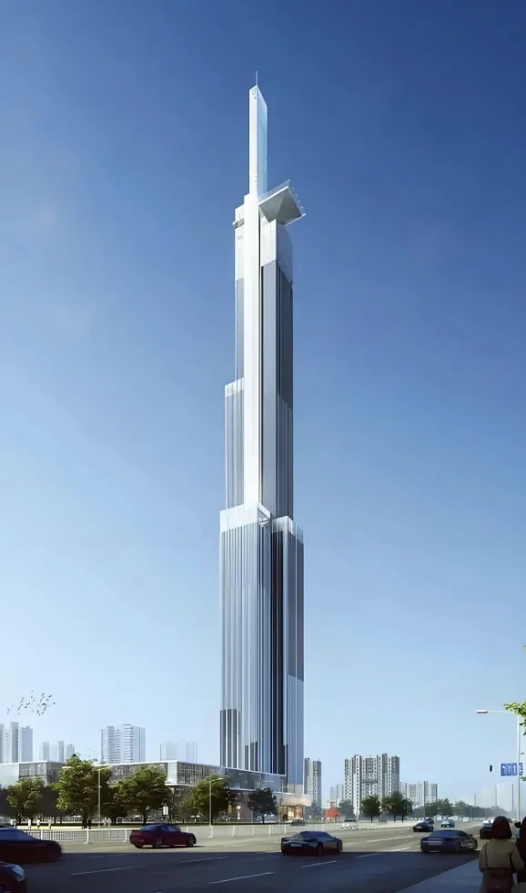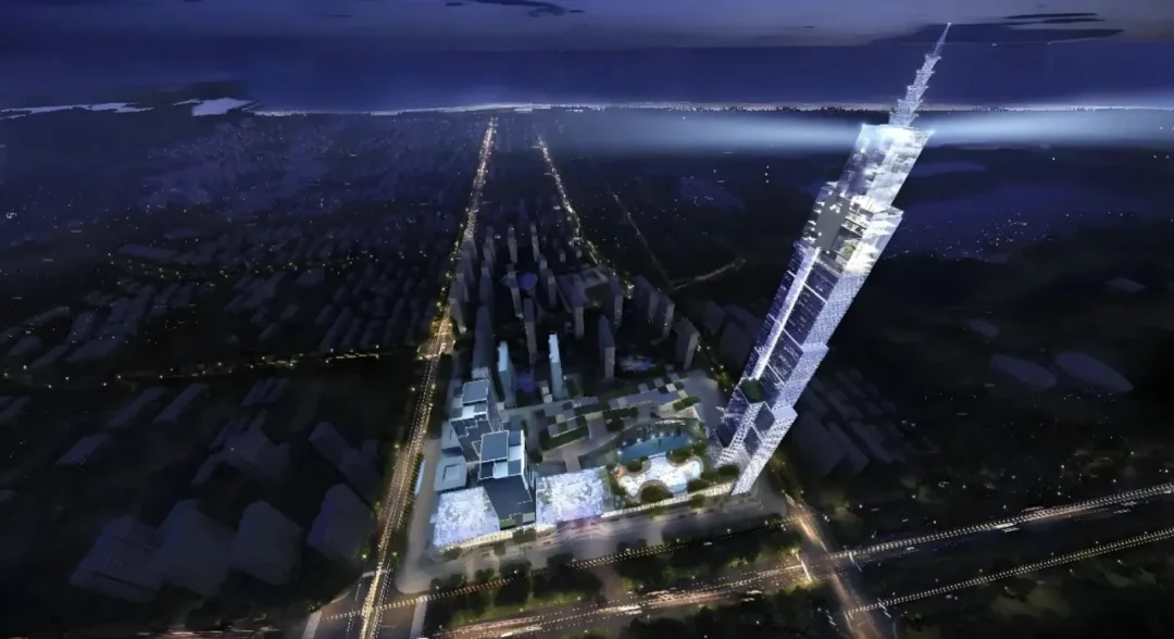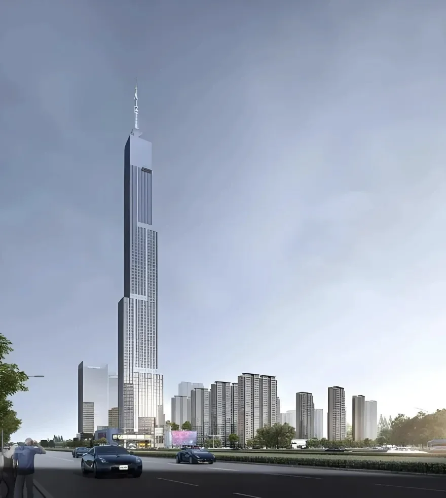 位于日照市中央活力区核心片区,青岛路以东、东营路以北,将是日照市的标志性建筑,由日照之光实业有限公司开发,总投资超 70 亿元,造价近 20 亿元,为集商务办公、文旅体育、星级酒店于一体的城市综合体。2019 年 11 月启动,预计将于 2028 年竣工。由北京清华同衡规划设计研究院有限公司设计,建筑高度 432 米,地上 92 层,地下 4 层,地上总建筑面积达 131956.37 平方米,设计以 “高山流水” 为核心理念,将建筑与自然有机融合,通过崎岖岩壁、潺潺瀑布、清澈水潭等元素营造诗意空间。塔楼裙房设置生态绿谷,种植热带植物,打造都市中的自然场景。立面设计采用两种不同反射率玻璃, “水” 部分选用超白玻璃,“山”部分采用镜面反射玻璃,分别象征 “山” 与 “水”,并生动展示瀑布倾泻的动态景象。平面采用 “品” 字形非中心对称形式,自下而上逐渐收退。外围密柱构成束筒,与钢管混凝土核心筒结合,形成 “束筒 + 核心筒” 结构体系,塔冠(89-94 层)为云中滑梯、高空攀岩、风洞滑翔等观光体验功能。