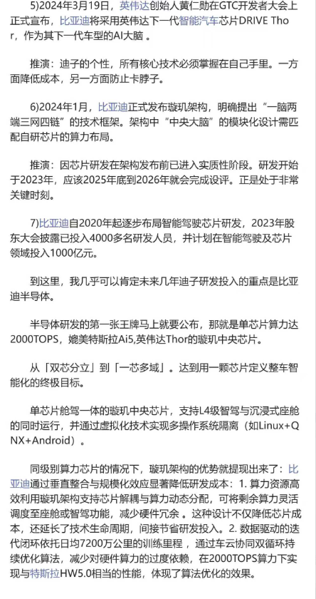 王传福曾说,“芯片是人造的,不是神造的!” 这句话的真实含义是,比亚迪很可能是未来全球最大的芯片企业! 比亚迪半导体研发的第一张王牌马上就要公布,那就是单芯片算力达2000TOPS,媲美特斯拉Ai5,英伟达Thor的璇玑中央芯片。