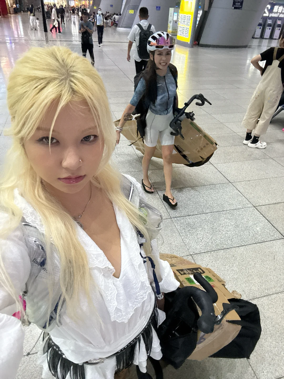 高铁站的姐姐好贴心还特意准备了纸壳子给骑友们