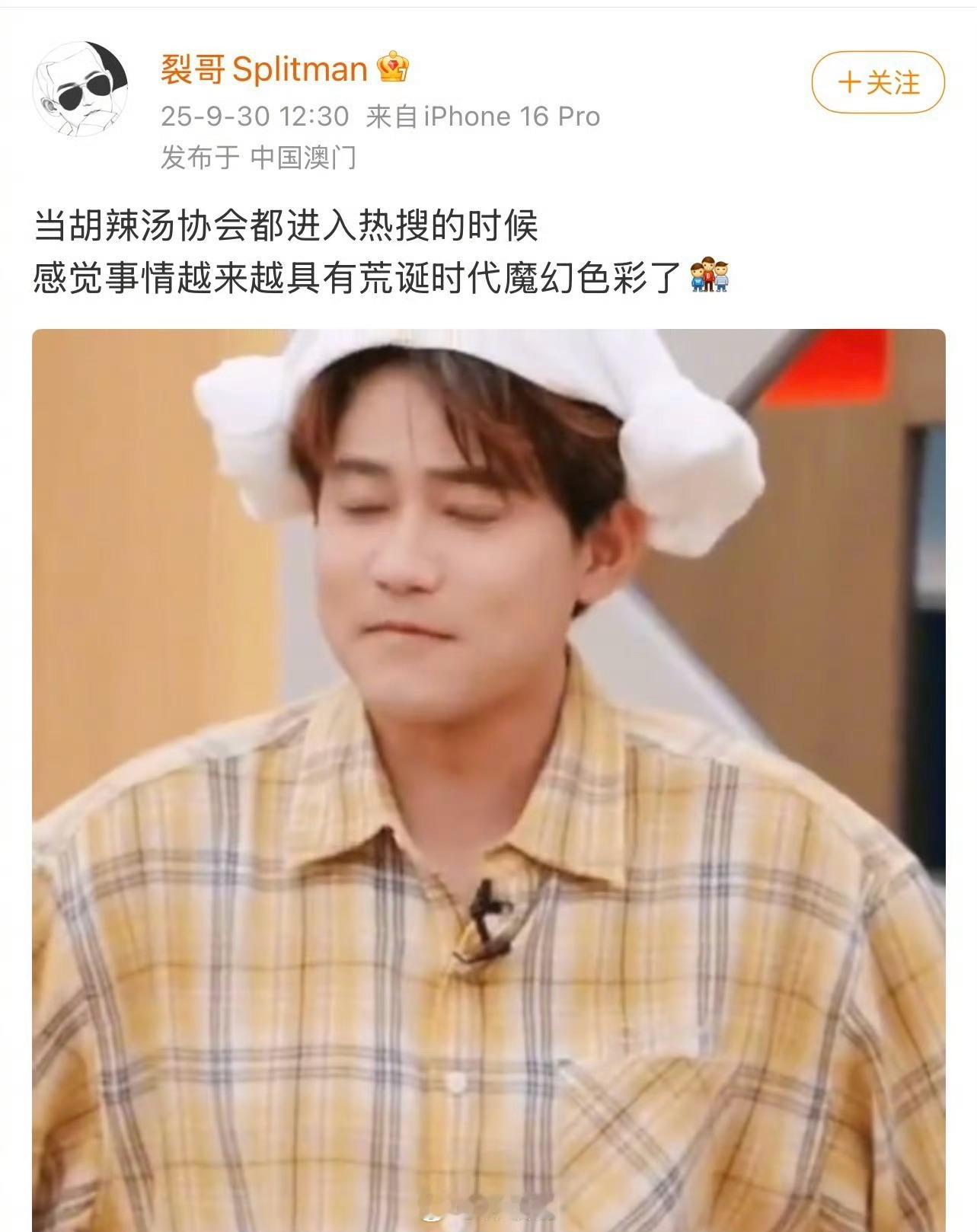 苏醒“当胡辣汤协会都进入热搜的时候,感觉事情越来越具有荒诞时代魔幻色彩了”
