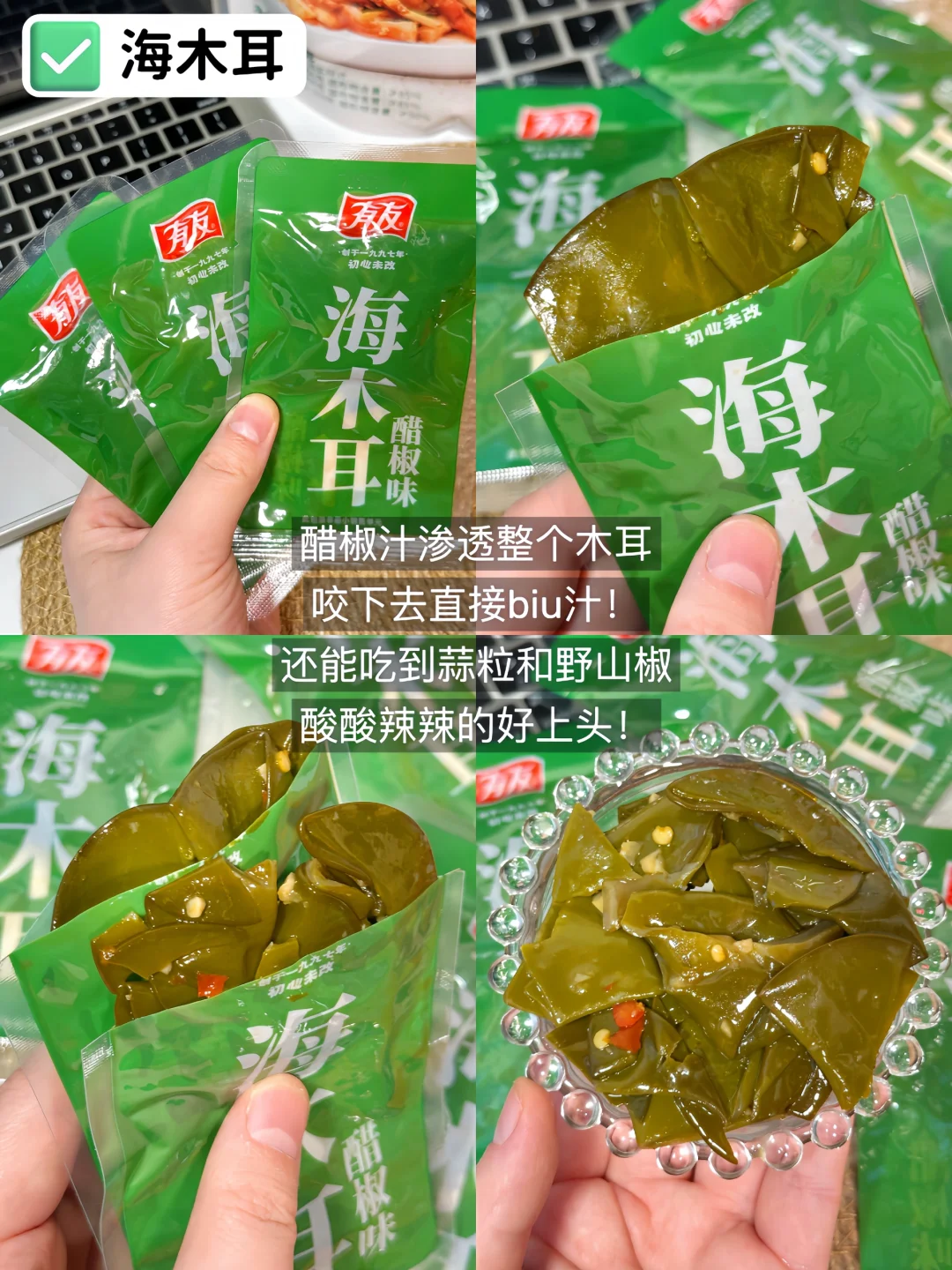 海木耳个头超大,咬下去脆嫩Q弹!冷卤泡制后,酸辣味敲上头,蒜香和辣椒碎混着嚼,层次感拉满,一口接一口根本停不下来!