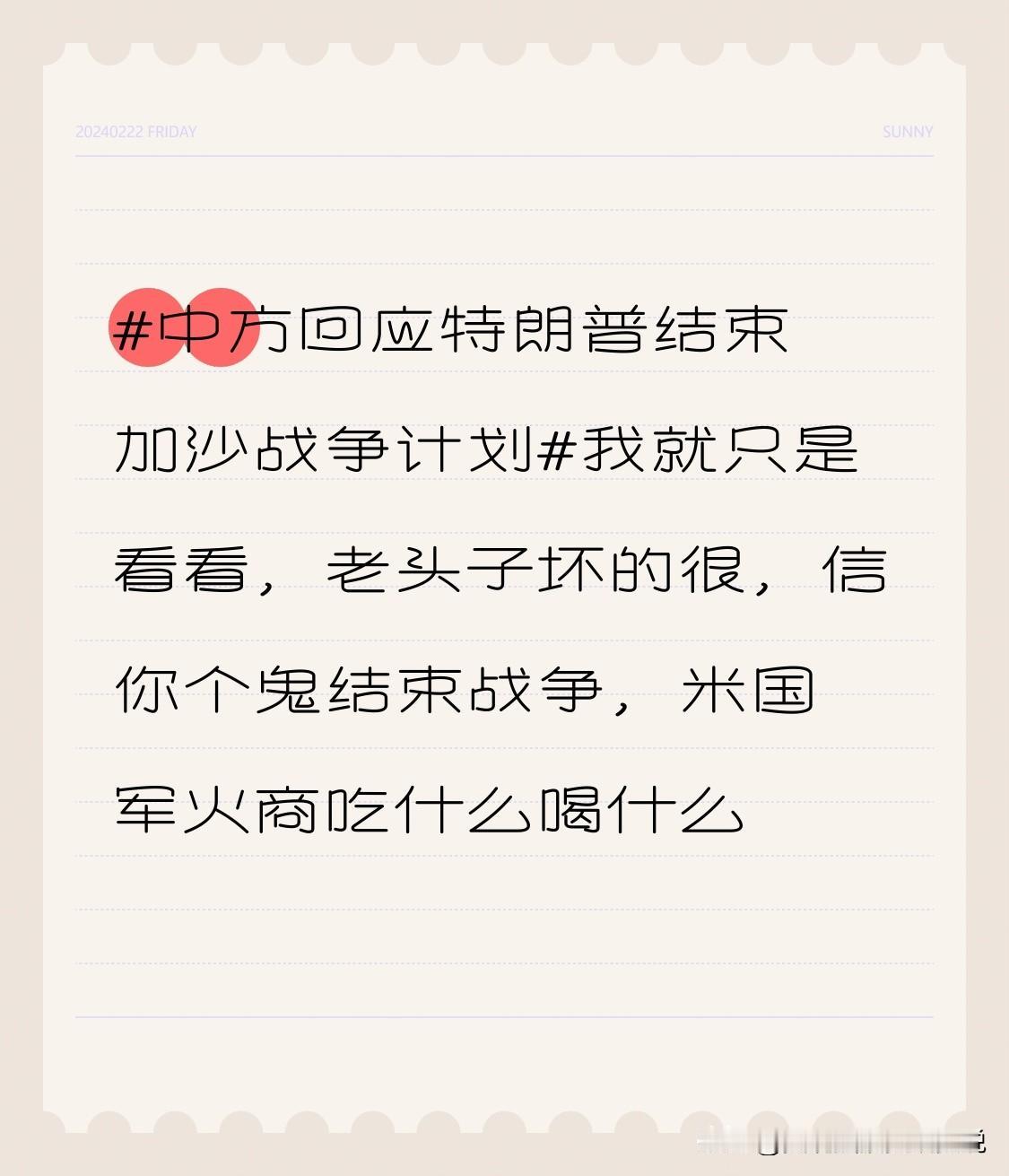 中方回应特朗普结束加沙战争计划我就只是看看,老头子坏的很,信你个鬼[捂脸][捂脸