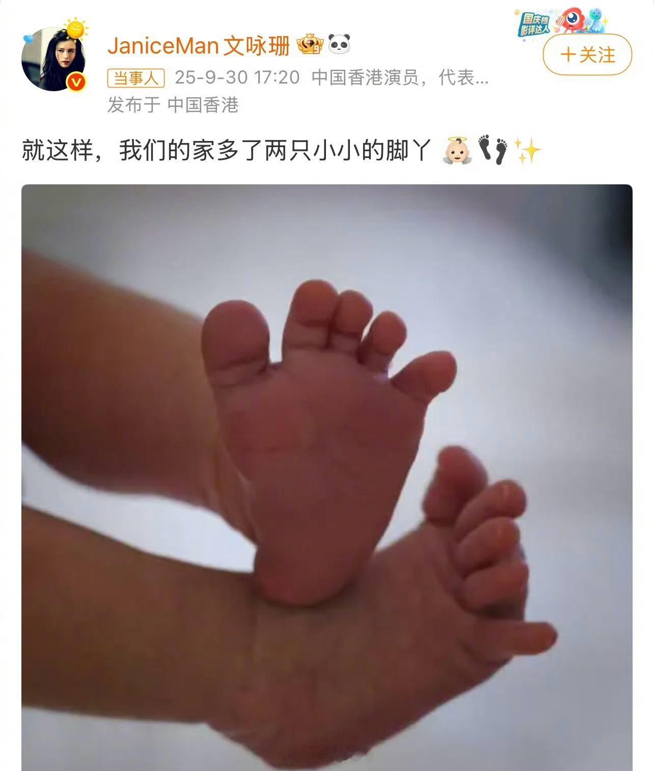 文咏珊官宣当妈“我们的家多了两只小小的脚丫”哈特软软