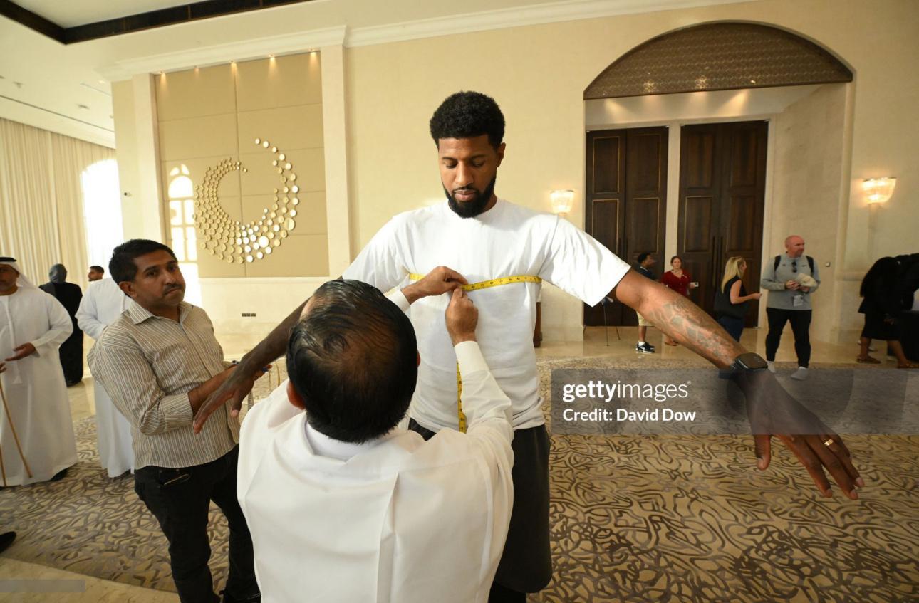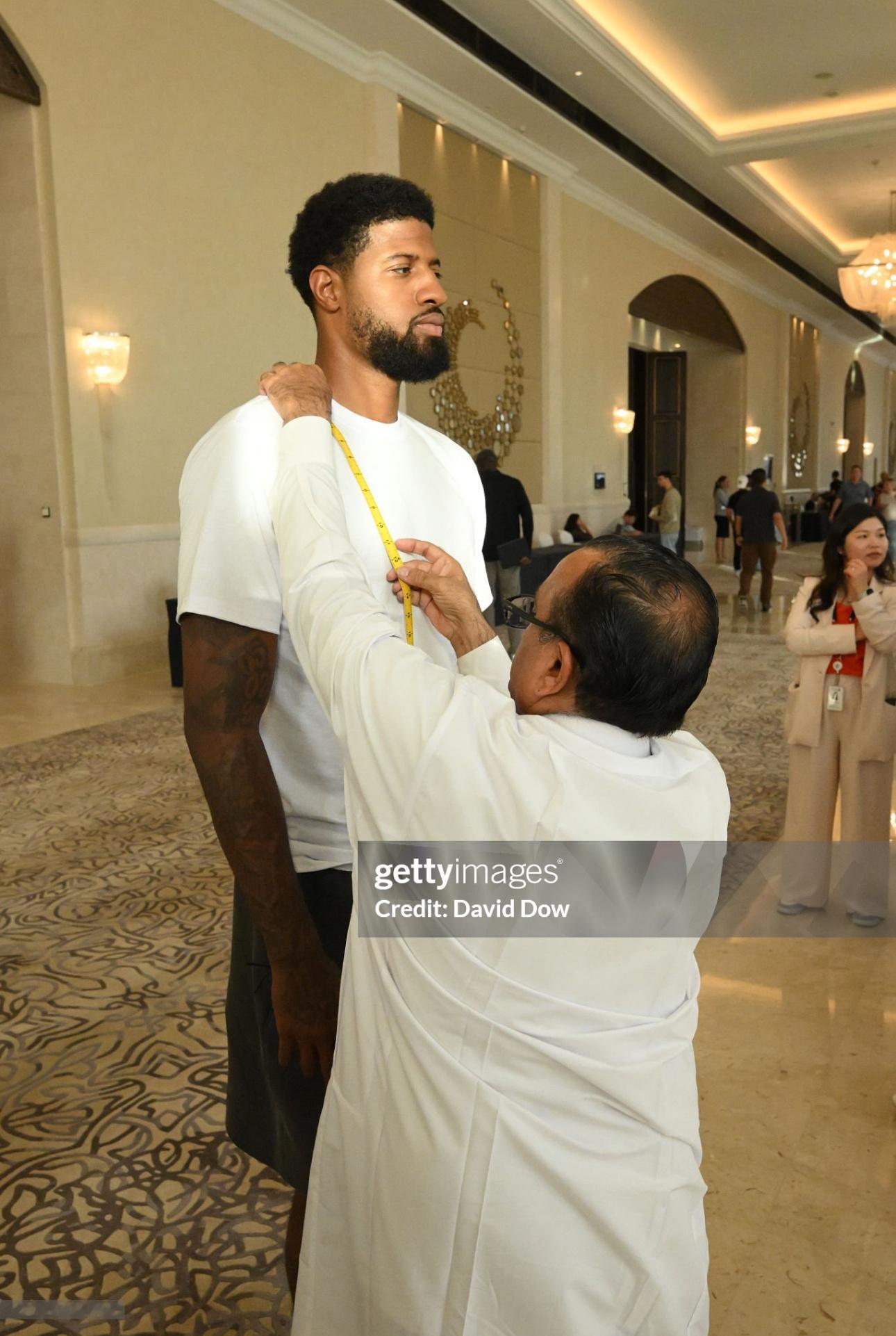 模特身材!听说量好尺寸要整一套当地的传统服饰白袍(坎杜拉)~[酷]费城76人我的观赛搭子PaulGeorge保罗乔治[超话]