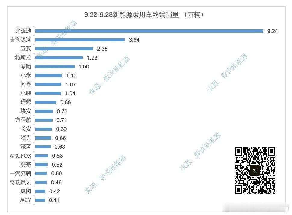 来自数说新能源分享的上周销量(9.22-9.28)数据[举手]