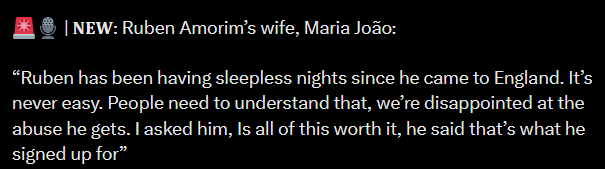 自从阿莫林到英格兰后,他晚上一直很难入睡。人们需要理解这一点,我们对他遭受的辱骂感到失望。我问他,这一切值得吗?他说,这是他选择的。