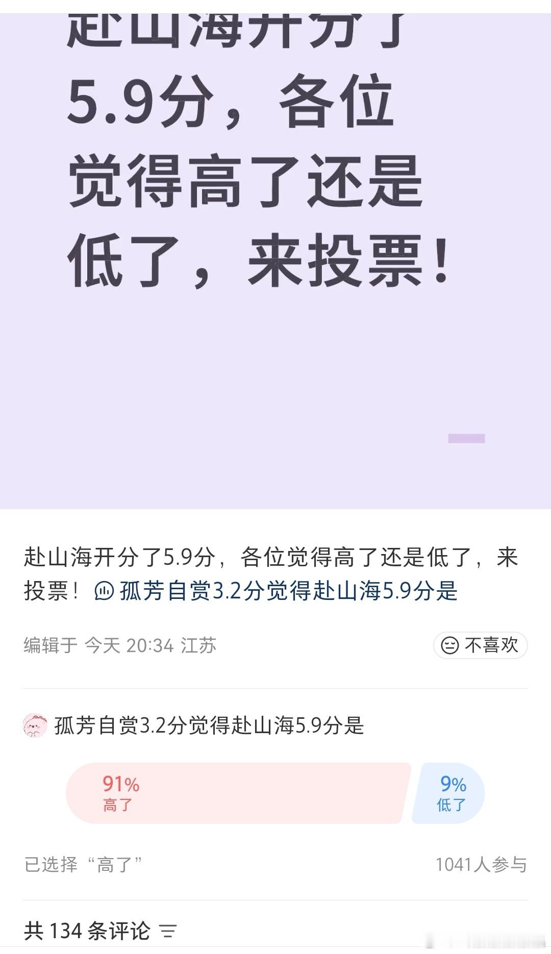 赴山海豆瓣开分5.9分红薯投票91%的人觉得高了