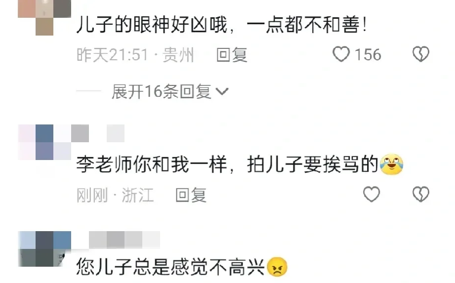有人觉得李立群低声下气的,还有人说和他一样拍儿子会被骂。