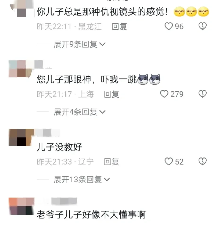 对此,许多网友在评论区吐槽,说他儿子仇视镜头,眼神好凶,特别不友好,没有爸爸脾气好。