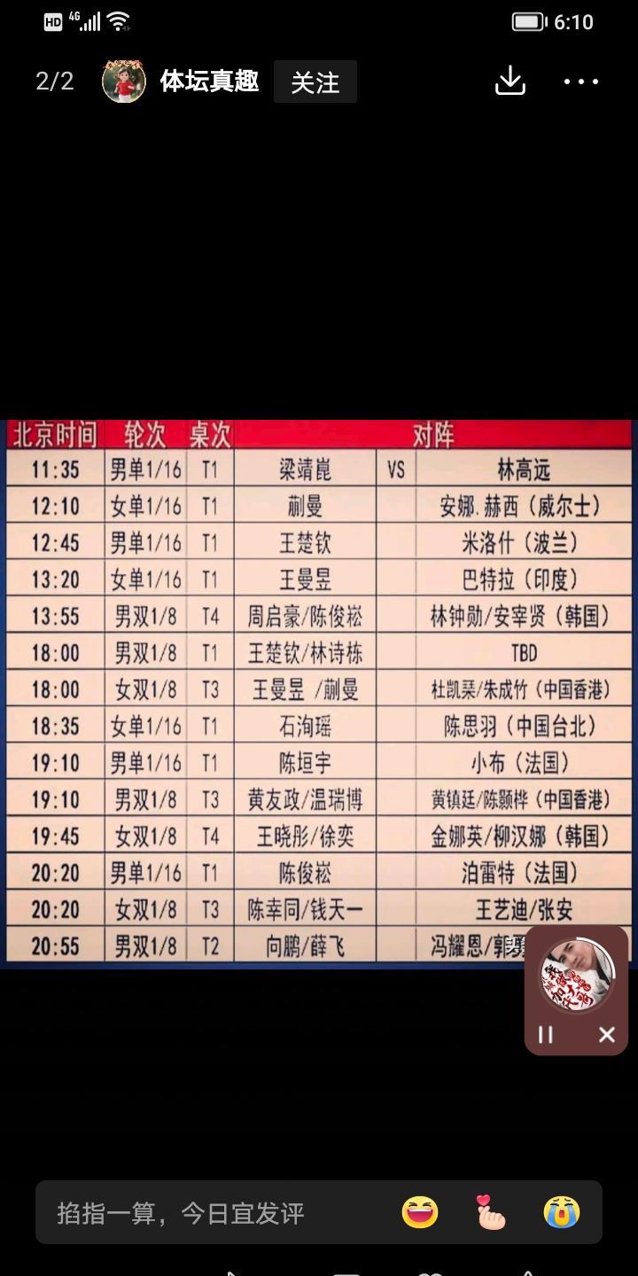 大满贯渐入佳境 央视体育播两场 今天(10月1日),2025世乒联WTT北京站大满贯渐入佳境! CCTV5央视体育频道现场直播: 11:30,混双四强1; 18:00,混双四强2; 关注乒乓球的球迷朋友们不要错过精彩赛事。 大满贯渐入佳境,央视体育播两场。