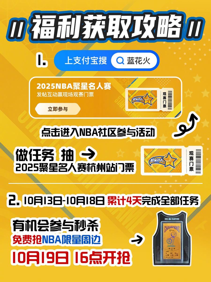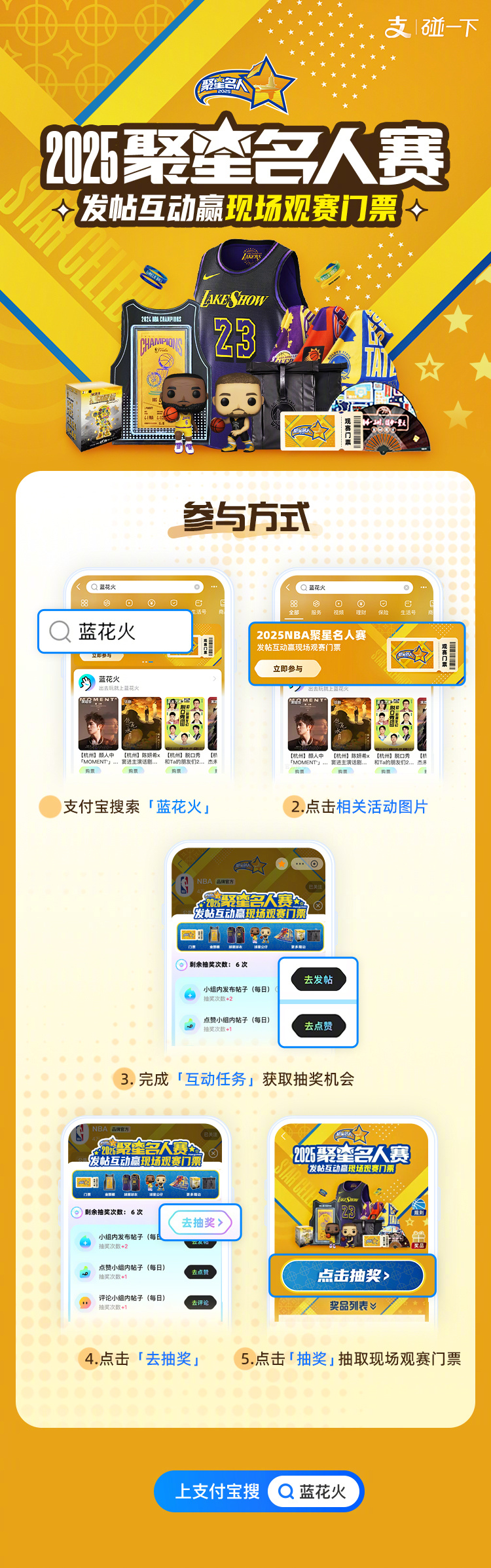 2025聚星名人赛 NBA传奇球员和演艺明星空降杭州,博主联合蓝火花邀你一起以篮球之名赴约,共赏跨界盛宴,参与方式如下图所示👇!发帖互动赢现场观赛门票!
