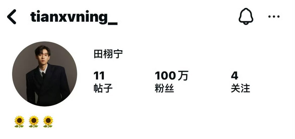 田栩宁ins粉丝数破100w🎉 田栩宁ins粉丝数破100w