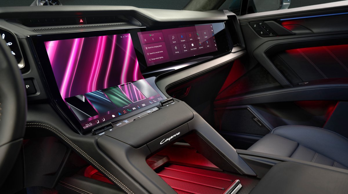 保时捷公布了全新一代卡宴的内饰,上了OLED屏幕,中间的屏幕处理有点意思,仪表和中控都是曲面屏,副驾驶屏幕不知道是不是选装,依然是保时捷的冷淡,精致,机能感设计,符合一贯的Porsche design风格。结合前段时间的保时捷发布的消息,下一代卡宴依然有燃油和混动版本车型,大家觉得怎么样?我与汽车的日常 祝大家十一假期快乐!