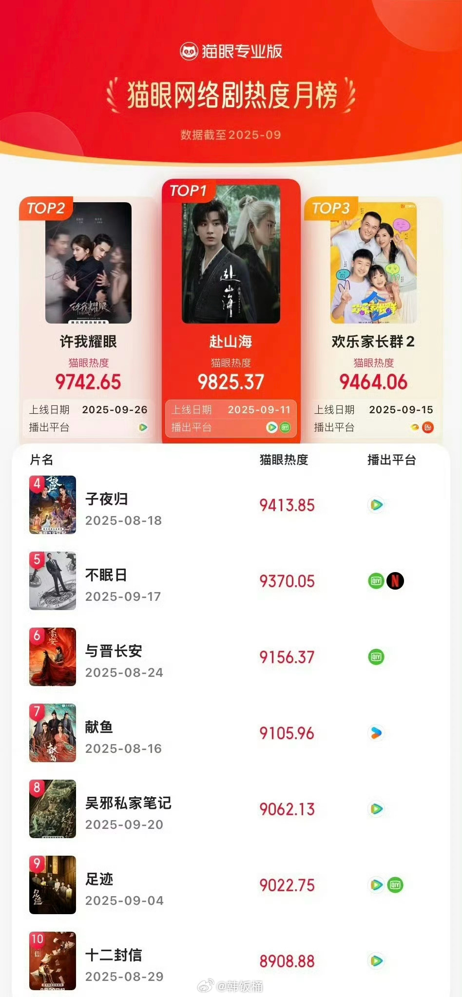 猫眼9月网剧热度