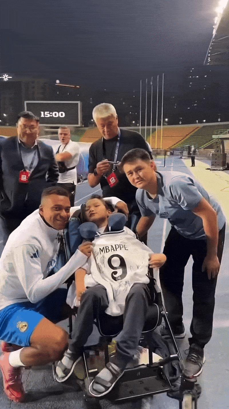 如此姆巴佩,怎能不爱? 欧冠皇马客场对阵哈萨克斯坦球队阿拉木图,姆巴佩入场时看到了坐在轮椅上的阿拉木图残疾人小球迷,二话不说微笑着过去和小球迷热情打招呼并送上亲笔签名。即使小球迷手中拿的是姆巴佩上赛季刚来皇马时身披的9号球衣,姆巴佩也没有半点儿犹豫和不满,全程笑脸签名,临走时还拍拍小球迷胸膛加油打气。 哪怕是逢场作戏也好,俱乐部安排也罢,但是这真挚温情的笑容假不了,还有什么理由黑姆总呢?
