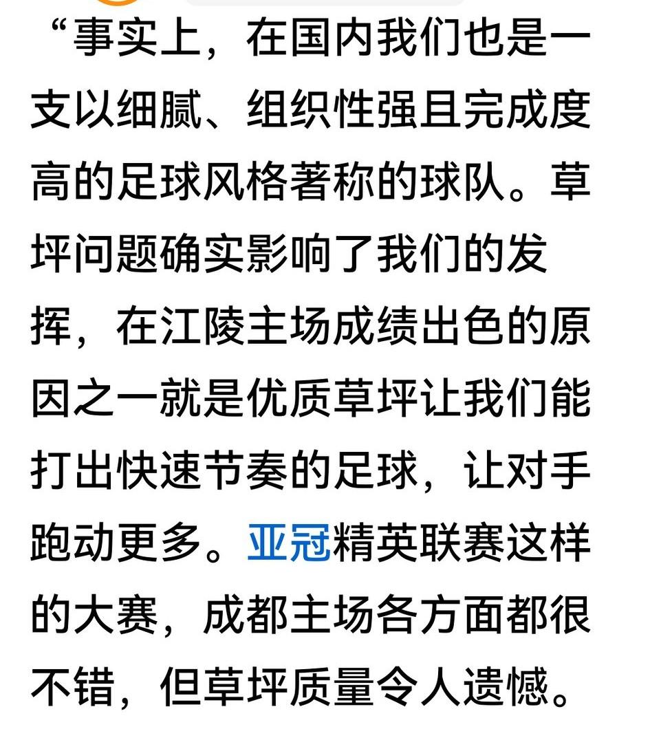 K国人赢球很得意,输球理由就一大堆。江源FC这次输球,主帅郑暻镐主喷的是凤凰山的草皮。 凤凰山的草皮很差吗?但经亚足联官方多次验收合格;江源的体能很好吗?可惜有2人早早抽筋倒地;江源的技术出色吗?但也没啥绝对的得分机会。 虽然承认韩国足、K联赛水平高于我们,这场1:0的比分有偶然性,但郑暻镐输不起的说词还是让人瞧不起。