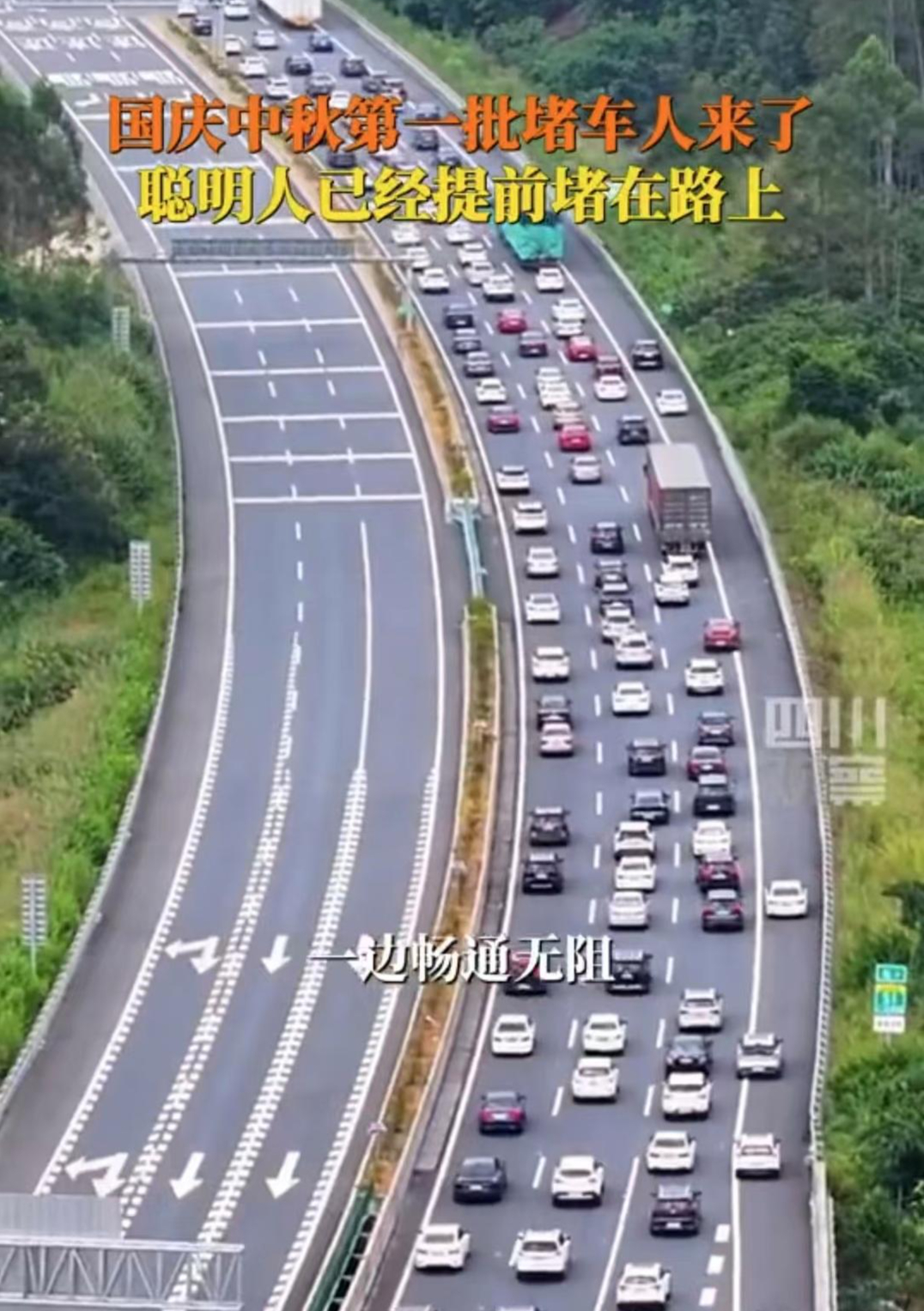 【#堵车也奔赴家和远方是国人文化基因#】#媒体评国庆大假堵车# 10月1日的这个热门话题让人会心一笑:国庆中秋第一批堵车人来了,“聪明人”已经堵在路上。网友拍摄的视频显示,9月30日的高速公路把“鸳鸯锅”具象化。交通运输部预计,假期去程客流高峰出现在10月1日,单日或超3.4亿人次,将突破历史峰值。整个国庆中秋假期,预计全社会跨区域人员流动量将达23.6亿人次。其间,无数开车人选择在高速公路上奔波。这是一场必然的出走和相遇。为何大家出门的心愿如此决绝,就连真的会被堵成“鸳鸯锅”也不在乎了?当然,没人愿意被堵,大家反复规划出门路线和时间,就是不想在高速公路上“凑热闹”,但是搁不住车太多而诗和远方太美。