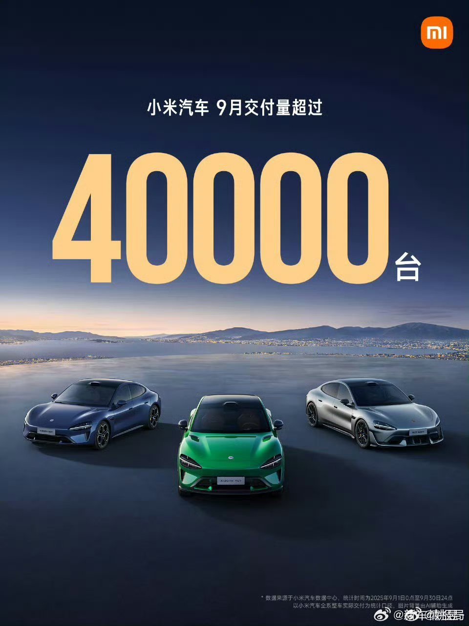 小米汽车9月交付量4w台,比上个月增加了1w台!