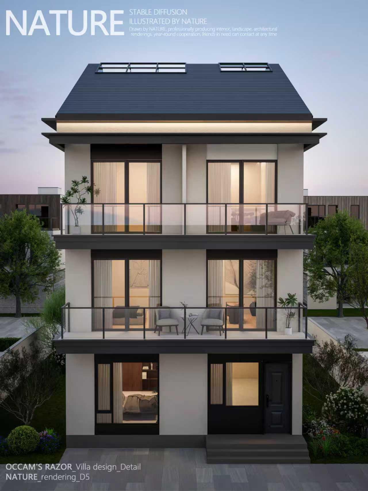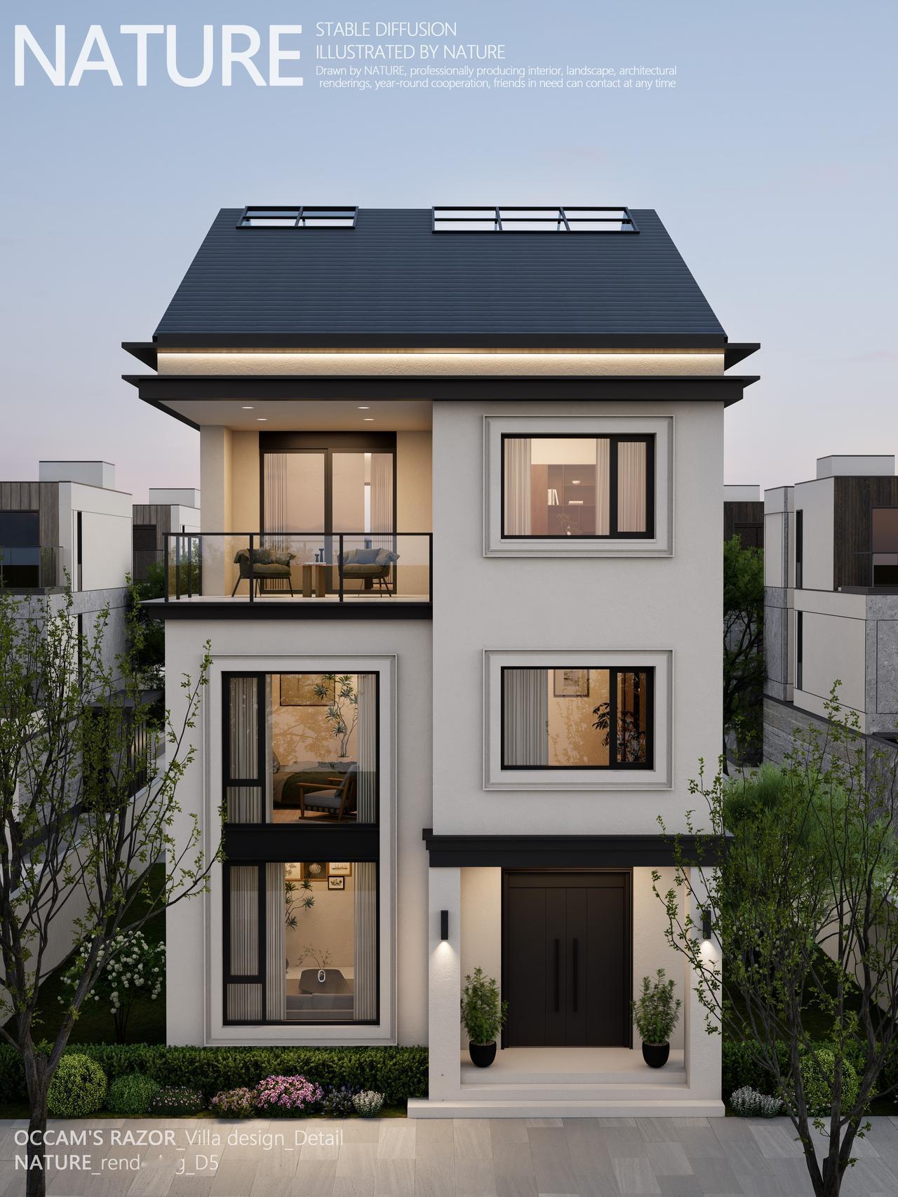 新作上市,8MX16M的宅基地如何实现别墅和现代感,可以参考这个作品,三段式的设计手法,暖灰色的外立面+蓝色坡屋顶,一幢可以传承100年的自建别墅就这样出现了,这几天准备一下完整的平立剖给大家分享和参考,敬请关注和期待。